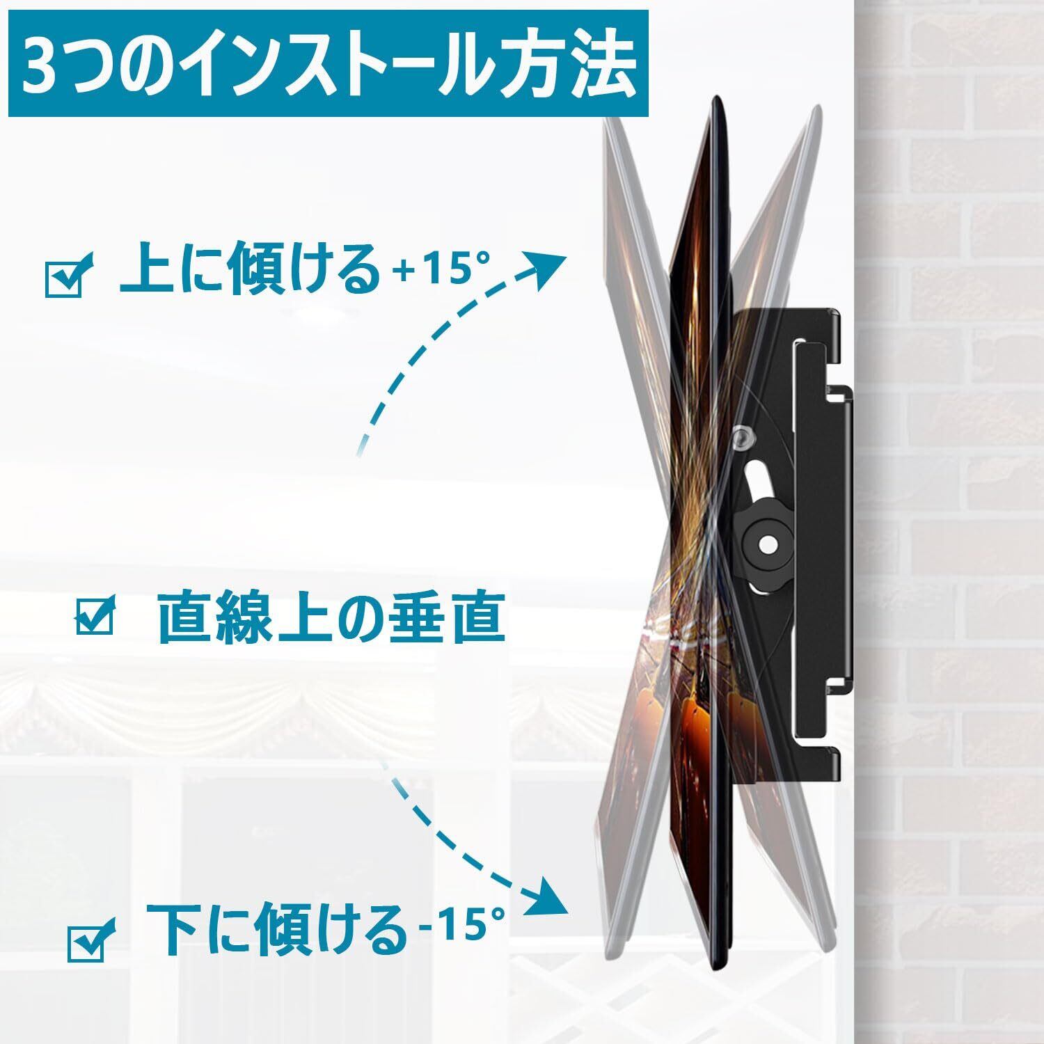 【壁掛けテレビ 金具多角度調節可能】上下調節可能なので、視聴スタイルや目線に合わせてお好みの角度をごゆっくり楽しんでください。 眩しさを軽減デザイン-上向き15°、下向き15°んな場所、どんな姿勢でも快適にテレビを楽しみ、より良い視聴体験ができます!