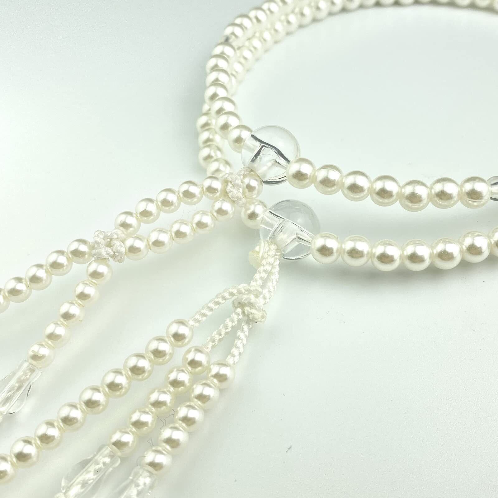 妙蓮花 創価学会用数珠 念珠 SGI数珠 女性男性通用 Mサイズ PCパール アクリル製水晶仕立 白色手毬房