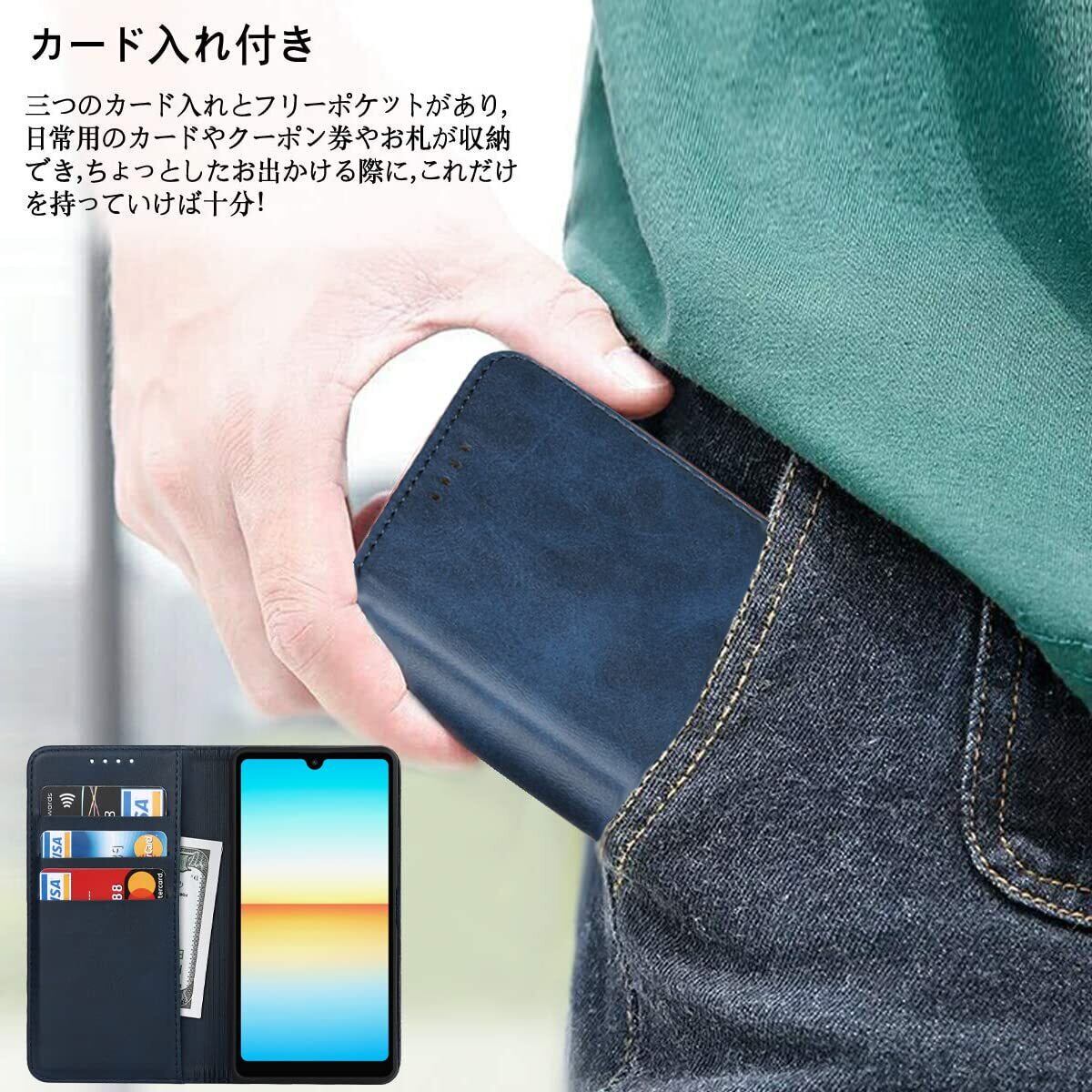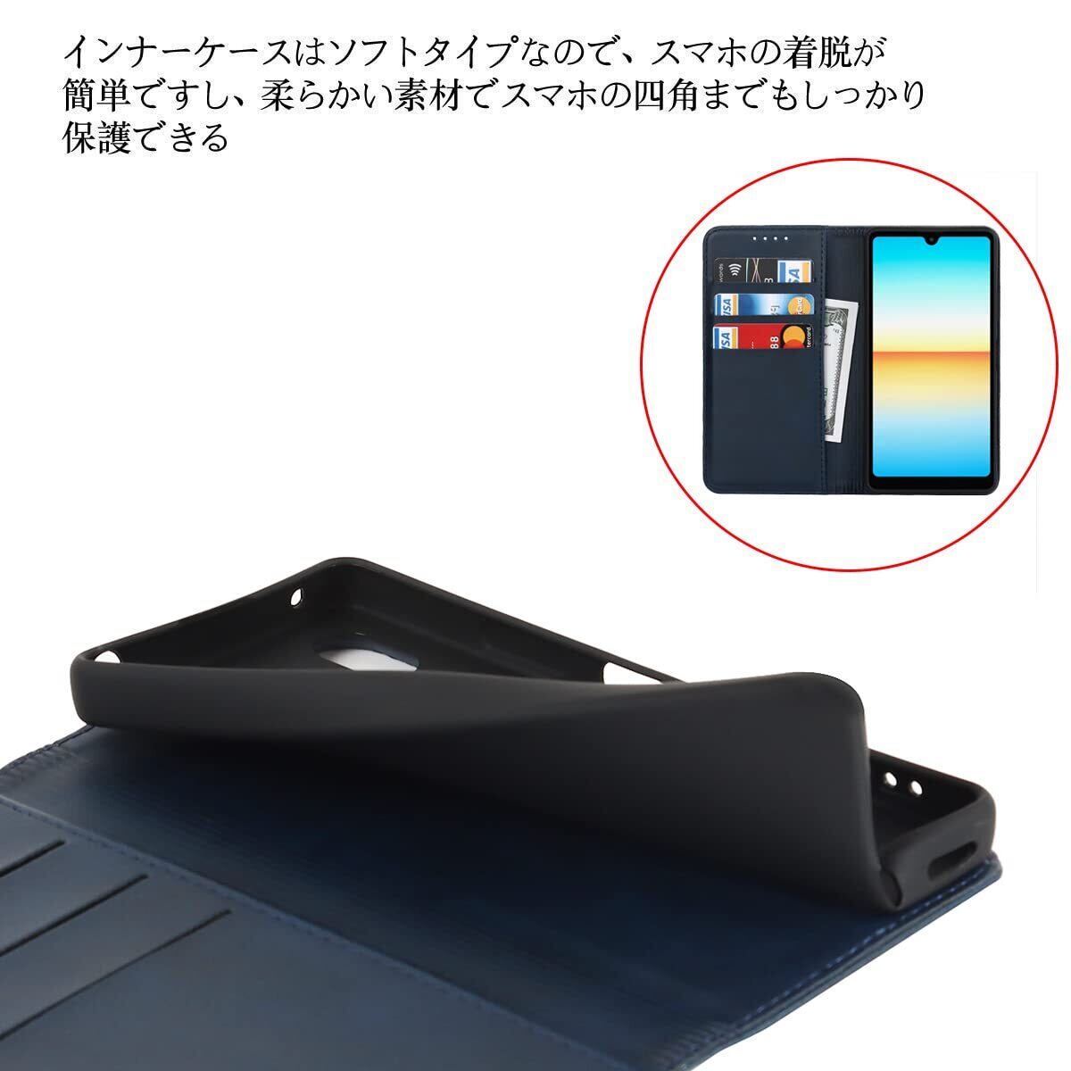 Xperia Ace III ケース 手帳型 AceIII ケース ACE3 au SOG08 docomo SO-53C ワイモバイル 全対応 ケース 手帳 ソニー SO53C SO 53C 手帳型ケース エクスペリア エース iii Xperia エクスペリアACE III スマホケース Xperia Ace lll ケース 携帯カバー ace3 ケース 手帳型 適用 CASE 【iCoverCase】 合成皮革 内蔵マグネット ケース 手帳型 カードケース スマホケース 携帯カバー カード入れ スタンド機能 落ち着いた色 レトロ ネイビー