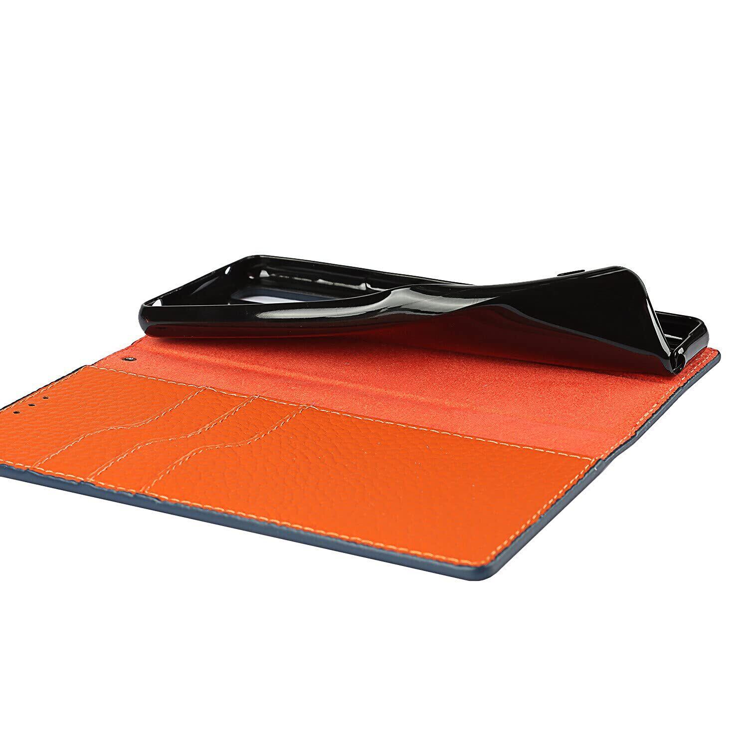Eastwave ソニー for Sony エクスペリア 5 III ケース 本革 本革 for xperia 5iii 手帳型ケース 財布型 カバー 本革 柔らかい 本皮 スプラットホール付き スプラット同梱 内蔵マグネットカード収納 横置きスタンド機能 - ネイビー