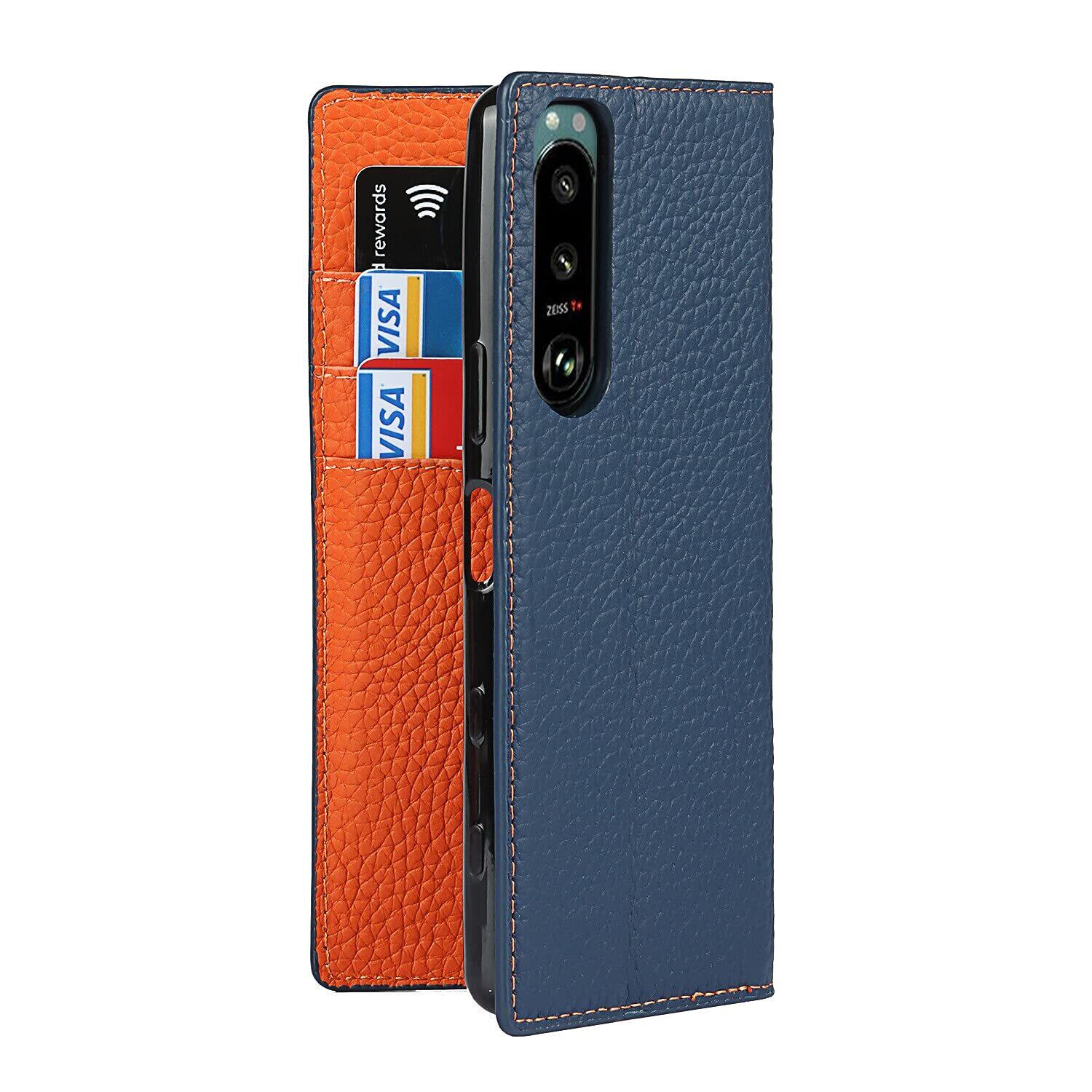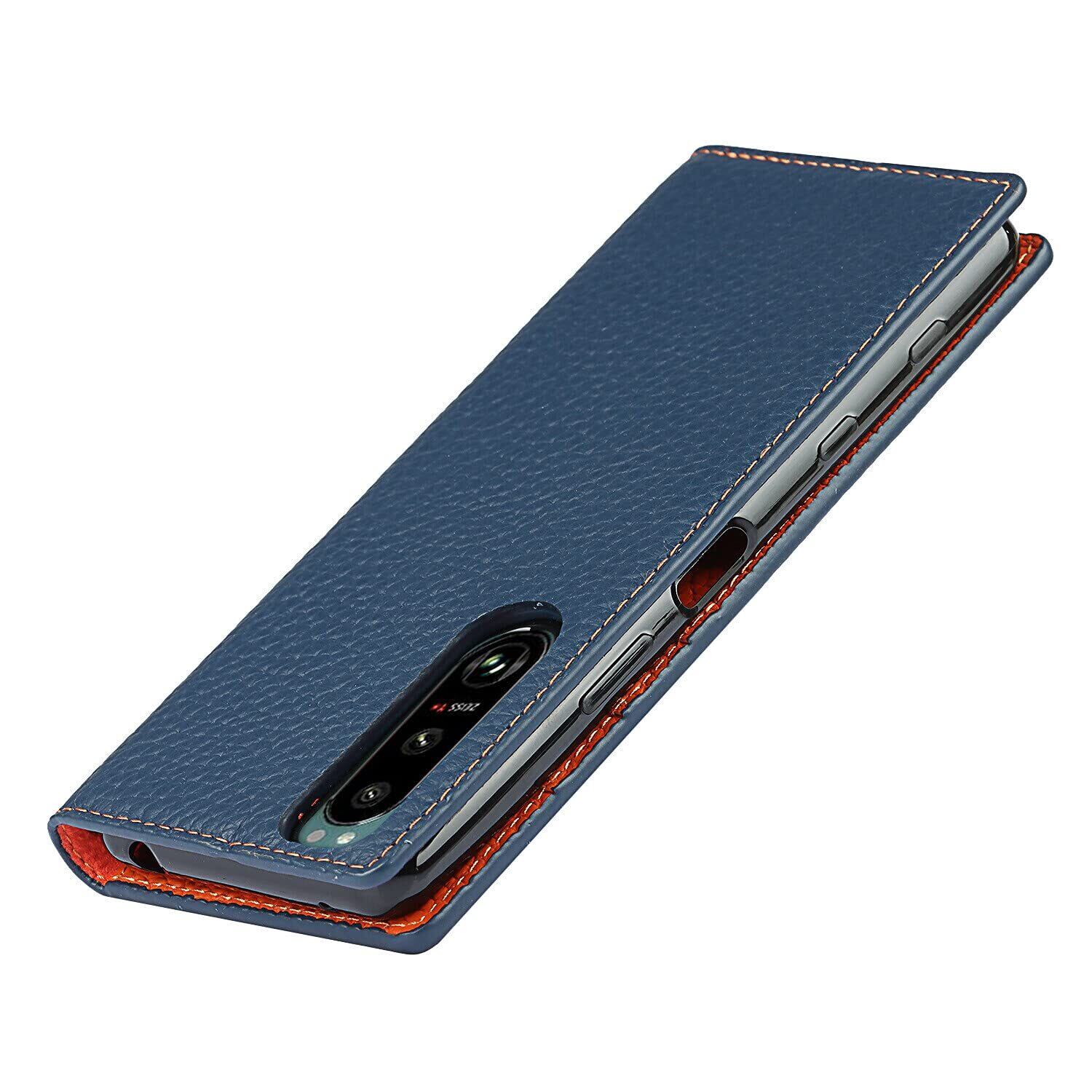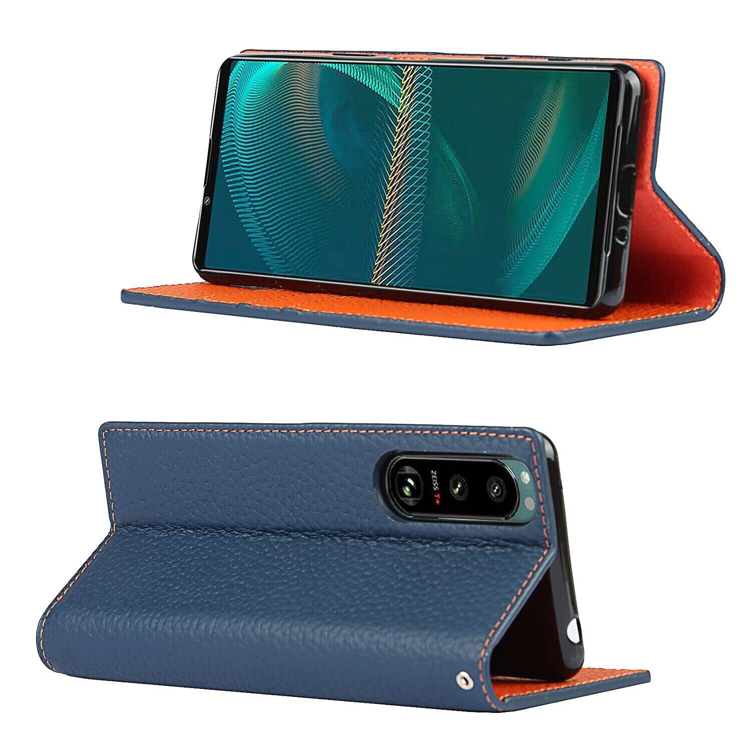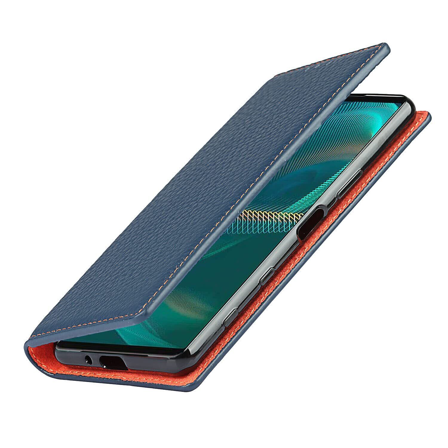 【人気商品】Eastwave ソニー for Sony エクスペリア 5 III ケース 本革 本革 for xperia 5iii 手帳型ケース 財布型 カバー 本革 柔らかい 本皮 スプラットホール付き スプラット同梱 内蔵マグネットカード収納 横置きスタンド機能 - ネイビー | gsmshop