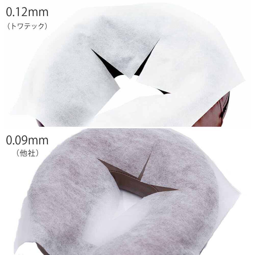 丈夫で破れにくく、心地よい肌触り!一般的な薄手のフェイスペーパーは0.09mm以下の物が多いですが、TWフェイスペーパーは約0.12~0.14mmと厚みがあるので丈夫で破れにくいとのお声をいただいております。 耐久性を持ち合わせながらも柔らかい質感で、肌触りが優しく、長時間の施術でも患者様の負担を軽減します。