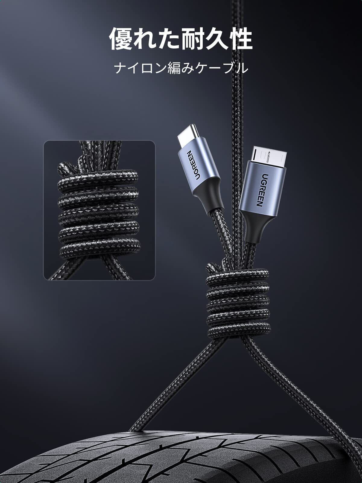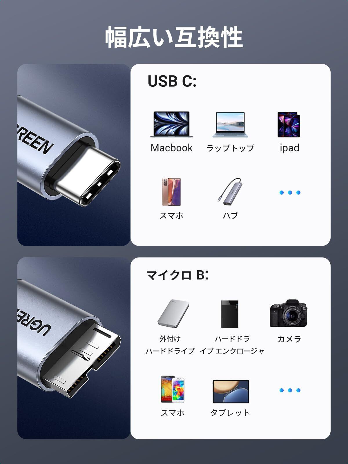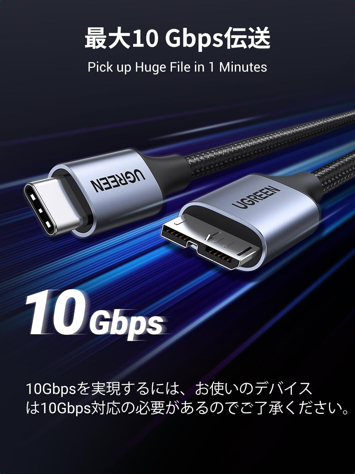 UGREEN USB C to Micro B ケーブル 0.5m USB 3.1 10Gbps高速データ転送 外付けhddケーブル マイクロB変換ケーブル 外付けHDD/SSD ハードドライブ/MacBook Pro/Galaxy S5 Note 3/カメラなどに対応-0.5m