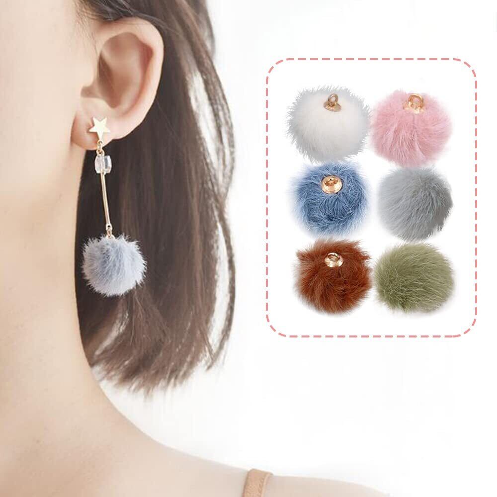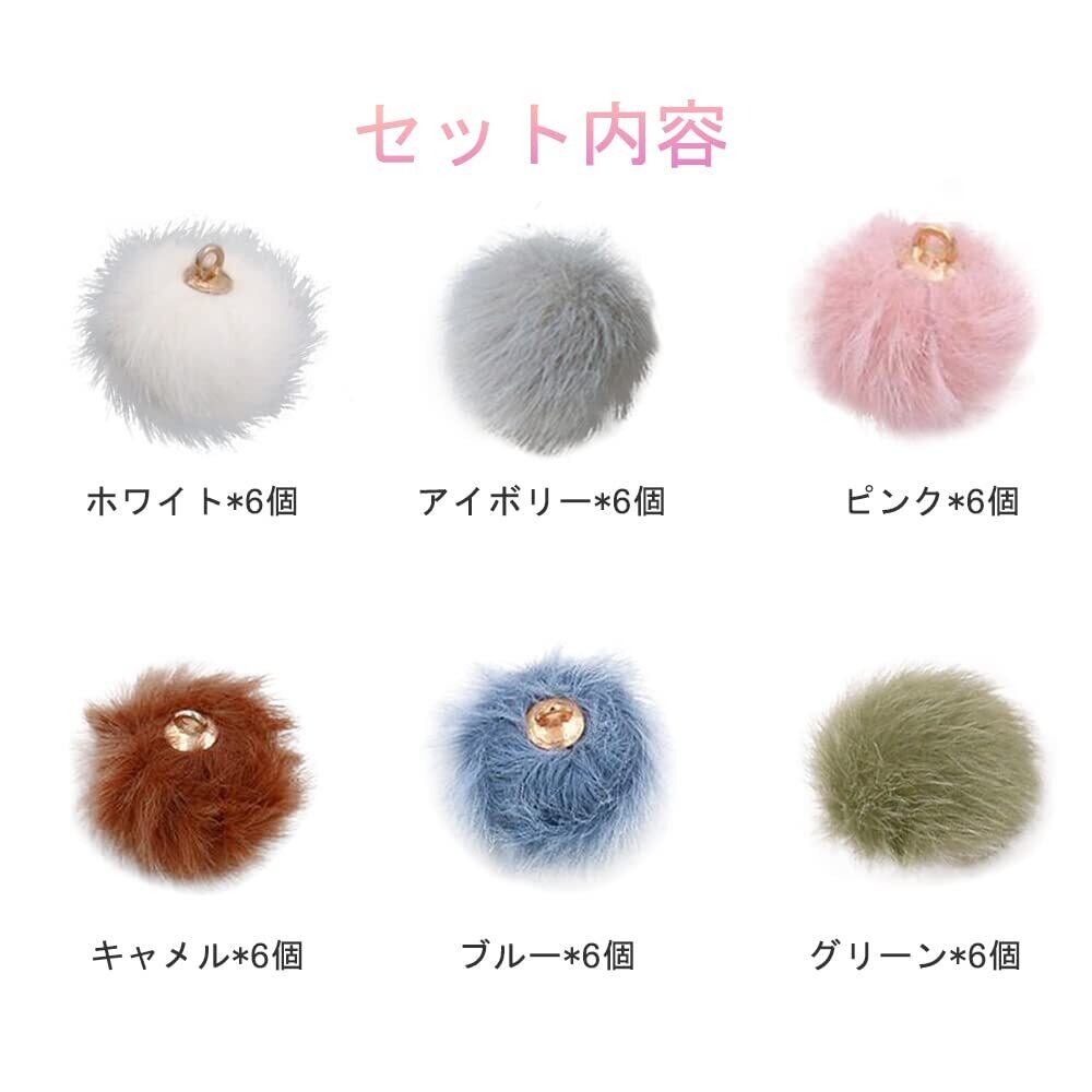 サムコス ファーボール 6色36個セット カン付き 15mm ポンポン チャーム ペンダント ふわふわ アクセサリーパーツ DIY 手芸材料 ピアスパーツ