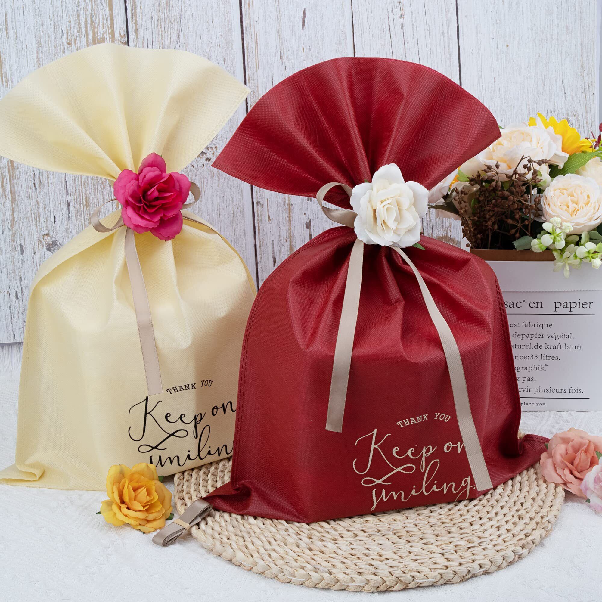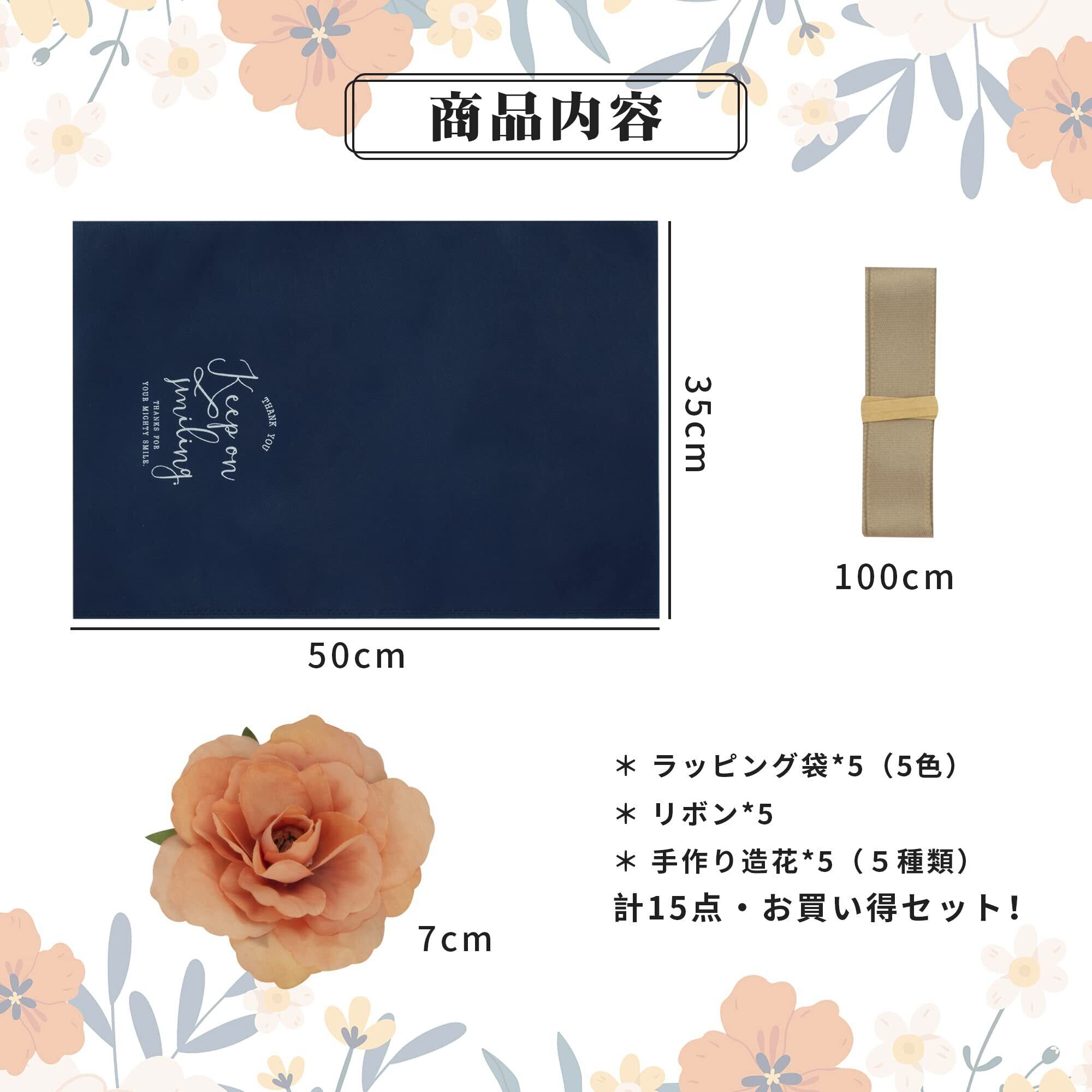 【商品内容】5枚特大サイズのラッピング袋(5色):50*35㎝ 5枚手作り造花(5種類):7㎝ リボン*5:100㎝ 合計15点
