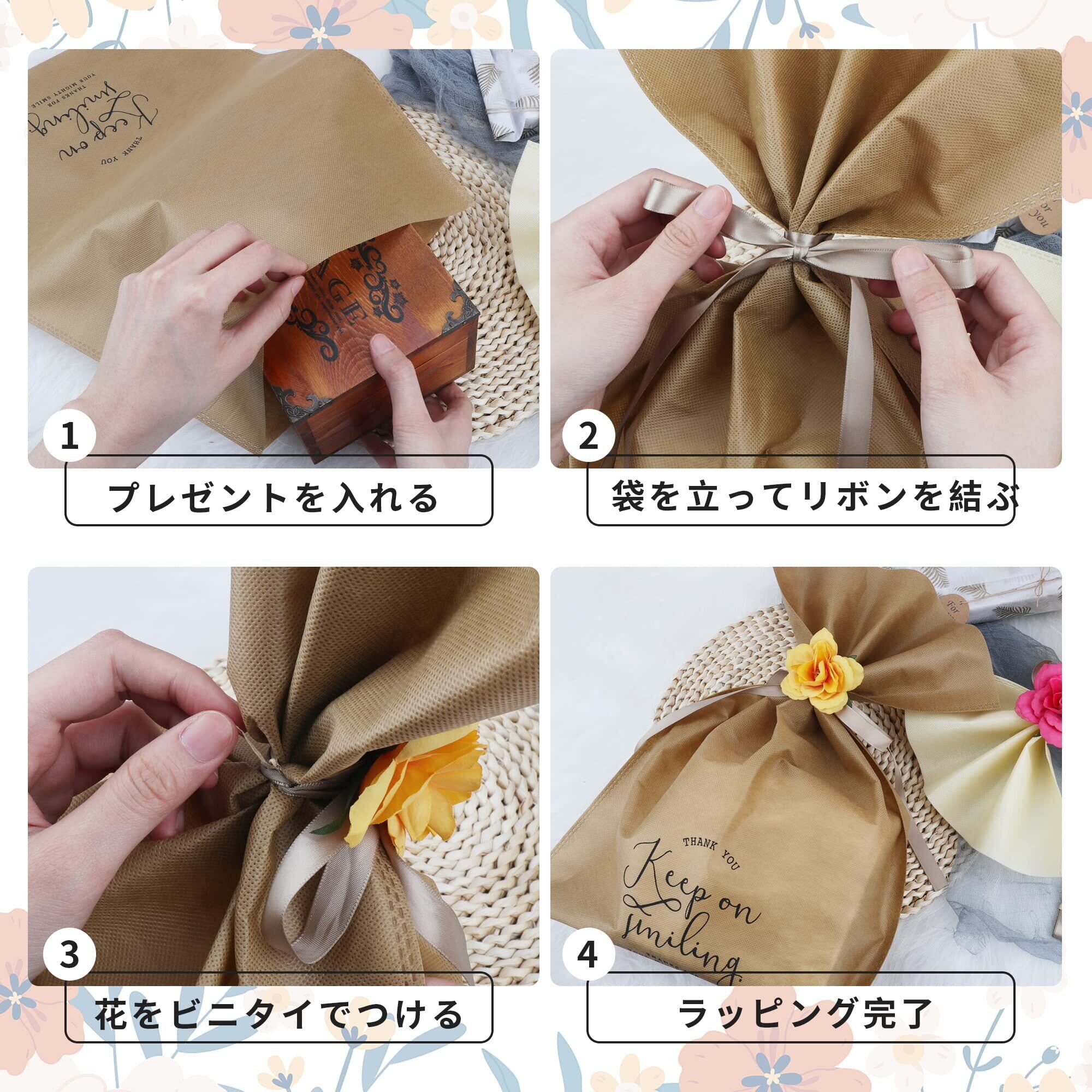 【綺麗にラッピング】リボン、手作り造花、ラッピング袋、必要な素材揃い、簡単にセルフラッピングができます。また、複数の品物をアレンジしたり、ショップで購入されたものなどをラッピングするのにもおすすめです。