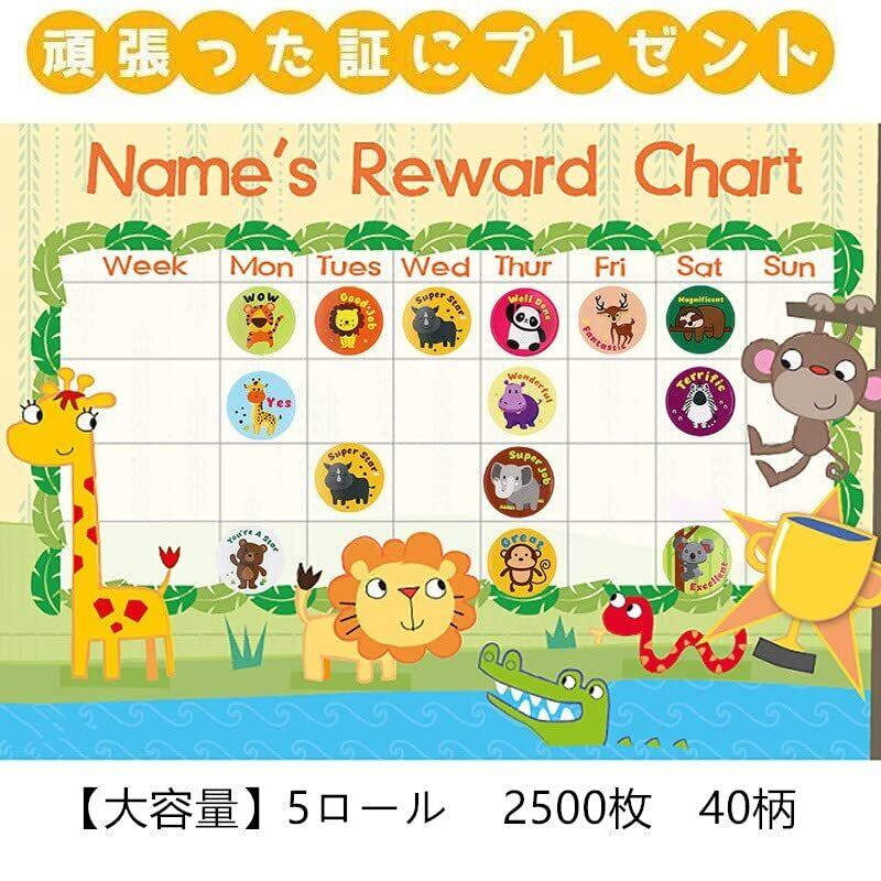 ごほうびシール 2500枚 ご褒美シール 40柄 丸シール かわいい 合格シール 出席シール 英語 できたねシール 動物シール 面白い 大量 直径25mm