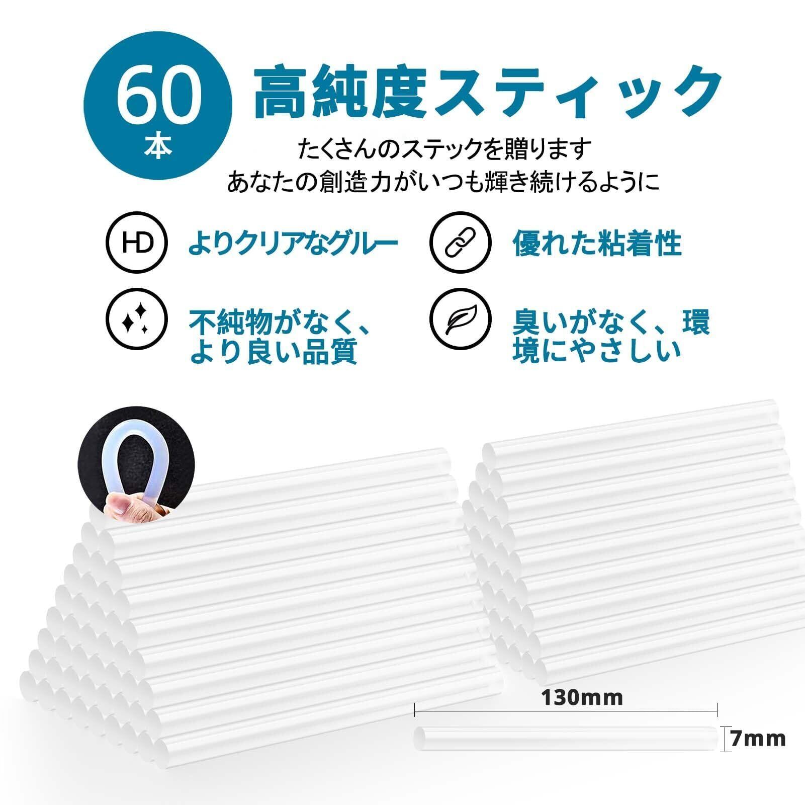 【幅広い用途・品質】60本のスティックを備えたボンドガンセットは、ほとんどの素材でもしっかり貼り付けます(金属や回路基板の表面に使用することはお勧めしません)。スティックのりの凝固点は 65°C ですが。家庭用・オフィス用・学校でDIY勉強・手工芸用など、様々な場合で大活躍です!片手でトリガーを引くだけの簡単操作。スティックが自動で出てくるので、もう一方の手が自由に使えます。ご不明な点がございましたら、お気軽にお問い合わせください。本製品は12ヶ月のメーカーを提供しています。
