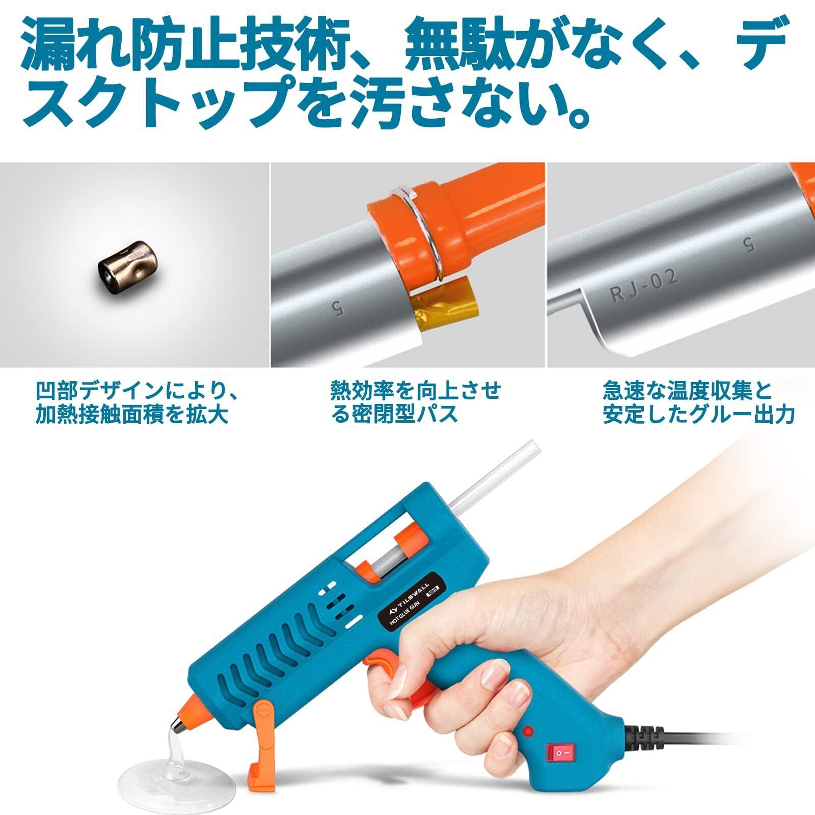 Tilswall グルーガン 60本スティック入り 50W ボンドガン 手芸 小型 強力 ホットボンド 接着剤 補修 急速加熱 DIY 超軽量 液漏れ防止 やけど対策 初心者 プロ 子供