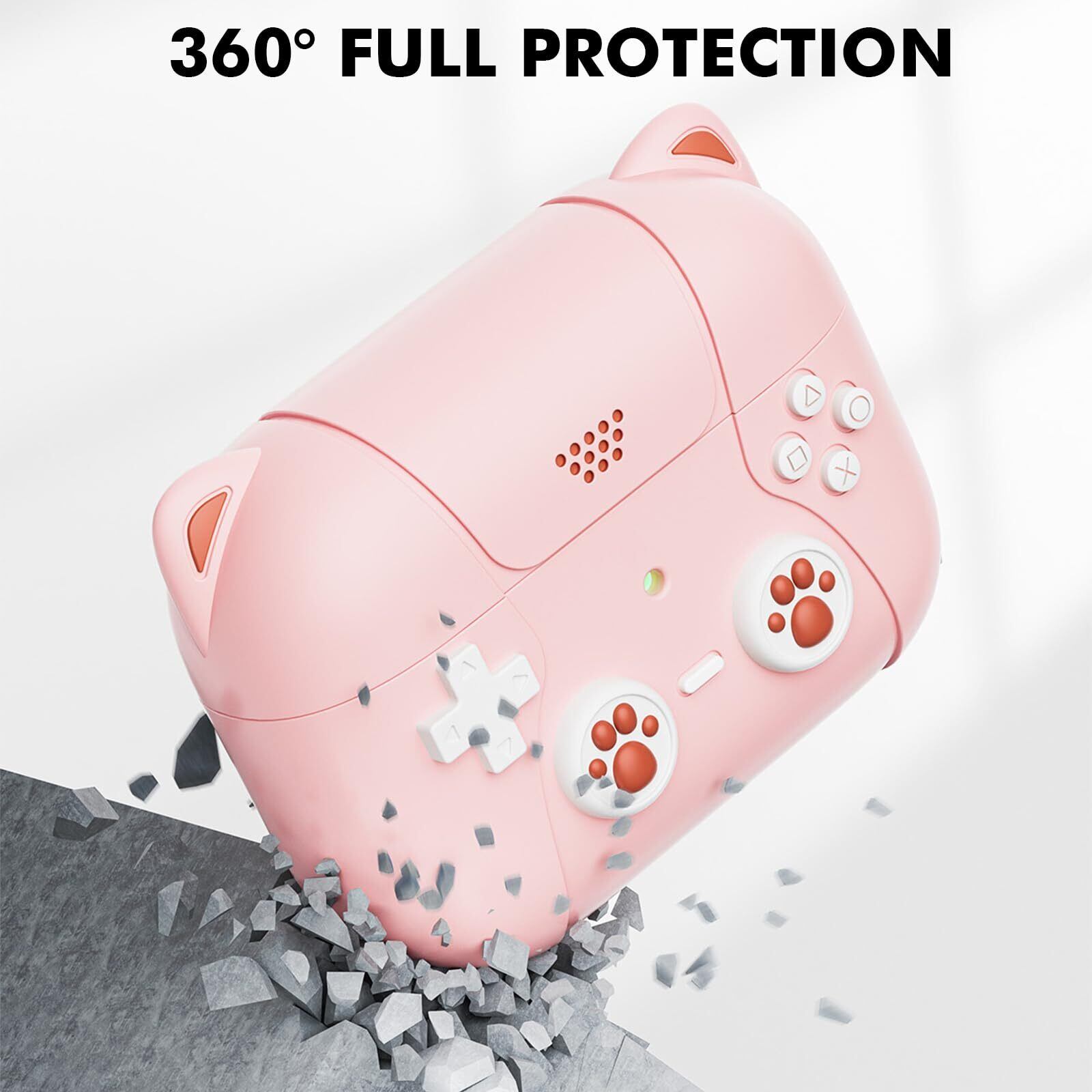NIUTRENDZ AirPods Pro2 ケース かわいい エアーポッズプロ2 ケース 猫とゲーム機のデザイン AirPods Pro 第2世代 ケースキーチェーン付 (ピンク)