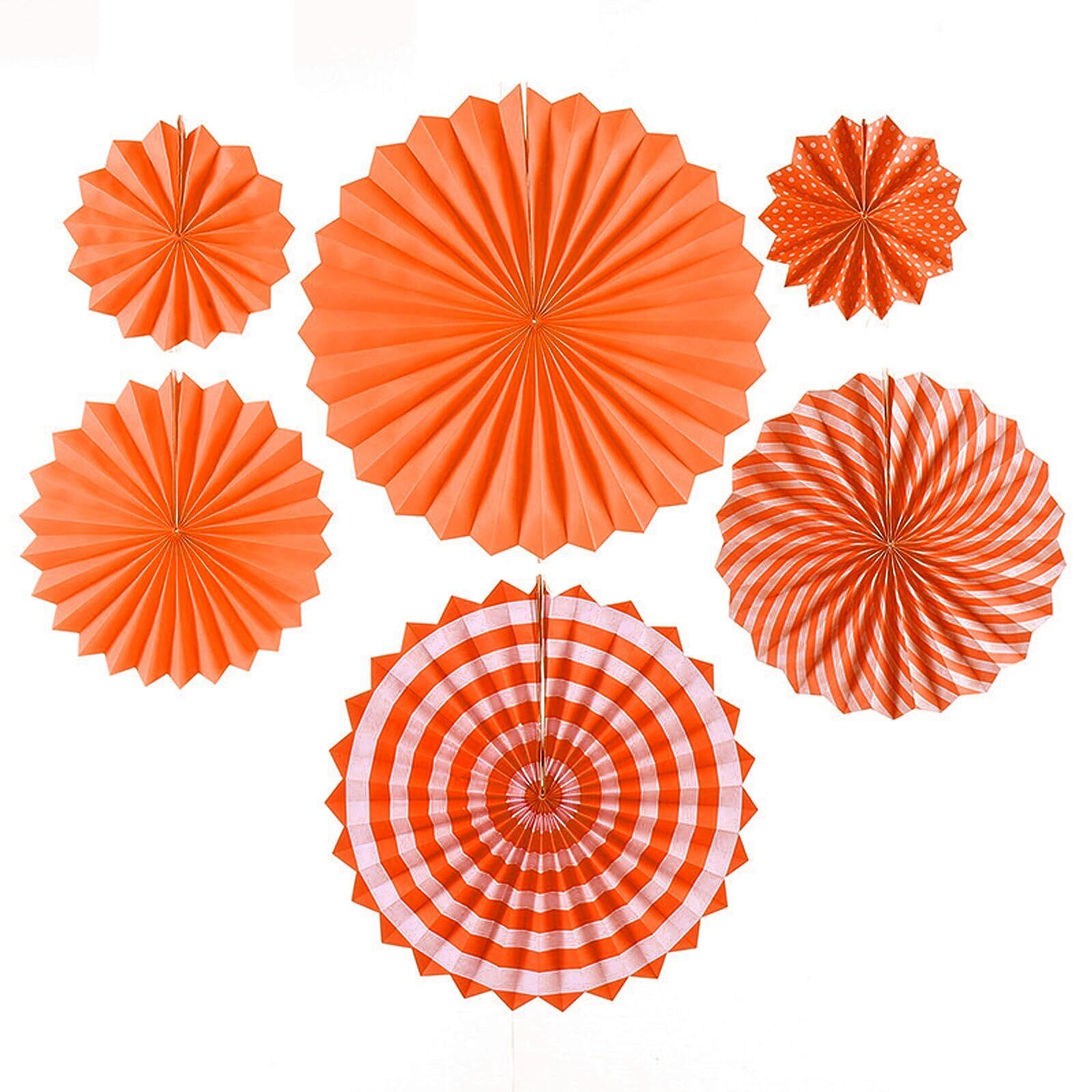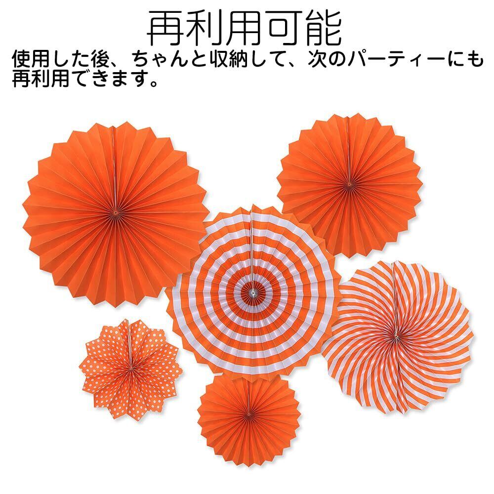 LIANHATA ペーパーファン 6個セット パーティー 装飾 3サイズ 扇子の組み合わせ デコレーション 記念日 バレンタイン 結婚式 お祝い お部屋の飾り つけ (オレンジ)