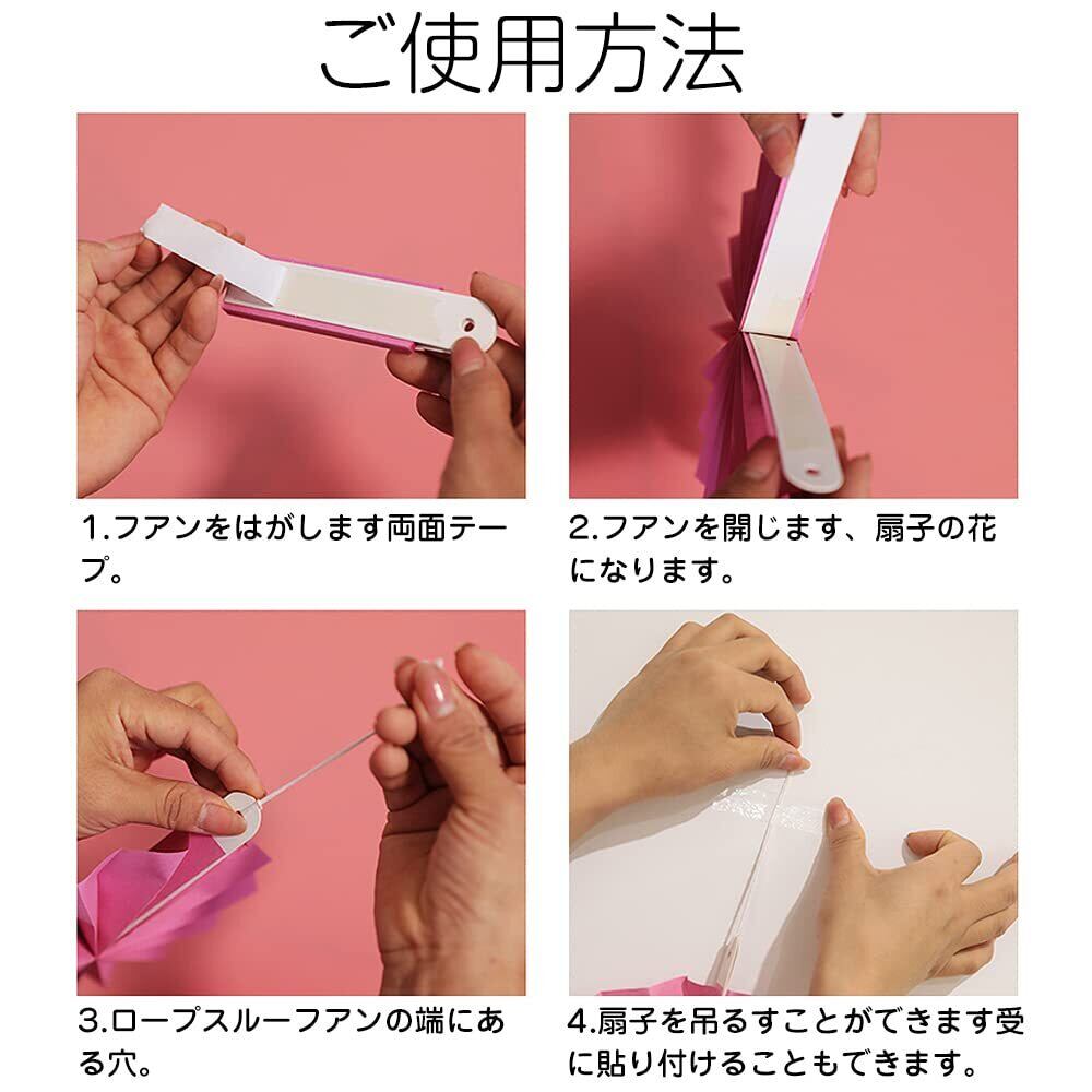 使いやすい:両端を扇のように広げて、側面を両面テープで貼り合わせるか、クリップで止めるかし、ヒモ部分を接着テープ等で壁に貼りつけます。