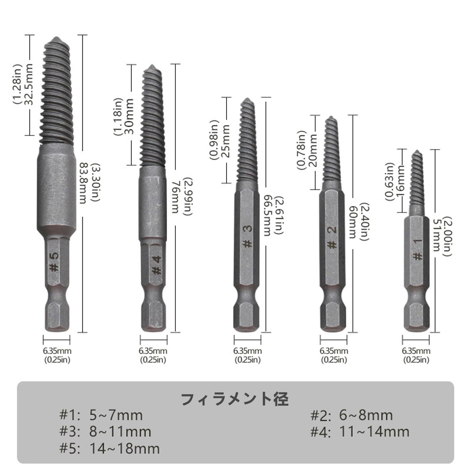 材質:高品質スチールHSS製。 耐久性と柔軟性のため、最高の強度を得るために、最大62〜65hrcを利用することができ、損傷したネジやボルトを取り外すのは簡単です。