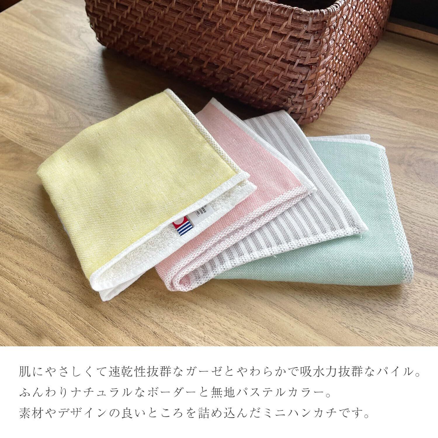 今治(Imabari) タオル 認定 ガーゼ&パイル ハンドタオル 3色セット フロネージュ タオルハンカチ 日本製 綿100% 25×25cm コンパクト イエロー ピンク グリーン