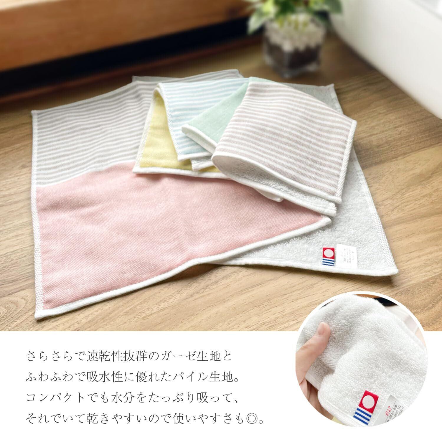 【使いやすいコンパクトなガーゼ&パイルタオル】 やわらかく吸水性に優れたパイル生地とさらさらで速乾性抜群なガーゼ生地を一枚に合わせたガーゼ&パイルです。 薄手なのにしっかり水分を吸い取り、すぐに乾く優秀なハンドタオルです。