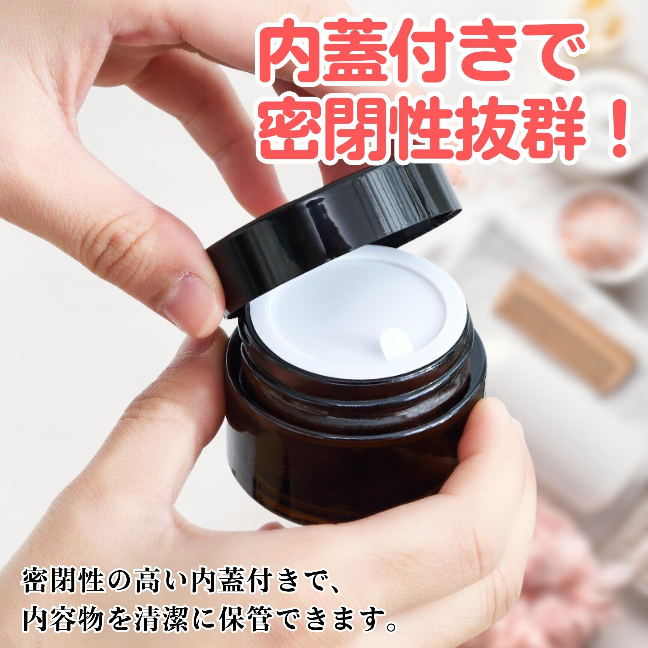 【遮光ガラス製クリームジャー6個セット】ハンドクリームやアロマクリームの保存や詰め替えに最適です。しっかり密閉できる内蓋付きで、旅行や出張時の持ち運びにも便利です。