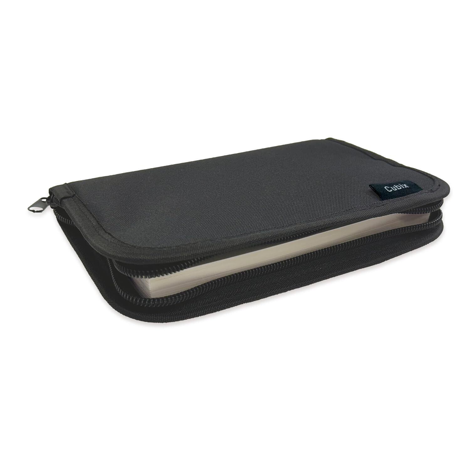 本を傷めず持ち歩ける、ファスナー付きのラウンドジップタイプのブックカバー
