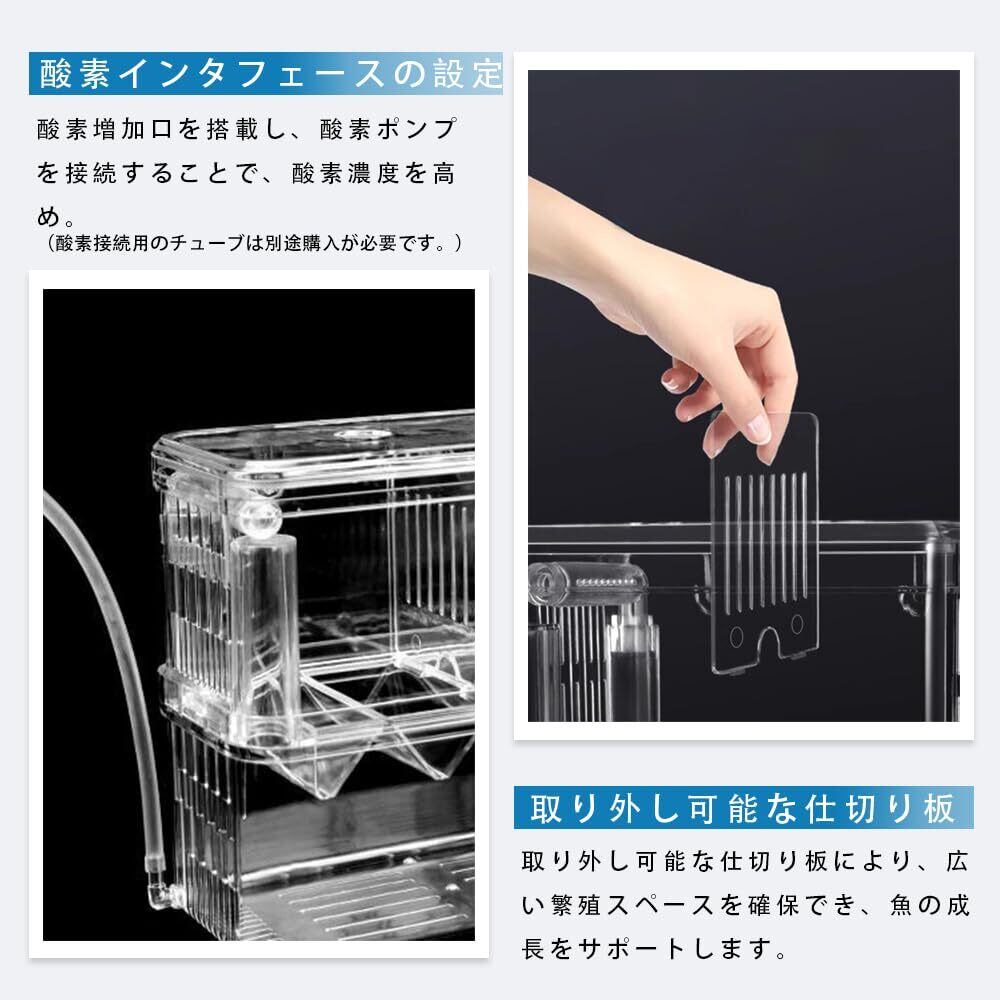 【高品質アクリル素材で安心】この繁殖隔離ボックスは、環境に優しく耐久性に優れた高品質のアクリル素材を使用しています。透明設計により、魚の状態を簡単に観察でき、飼い主に安心感を与えます。また、魚に害のない安全な材料を使用しており、稚魚や成魚を守ります。
