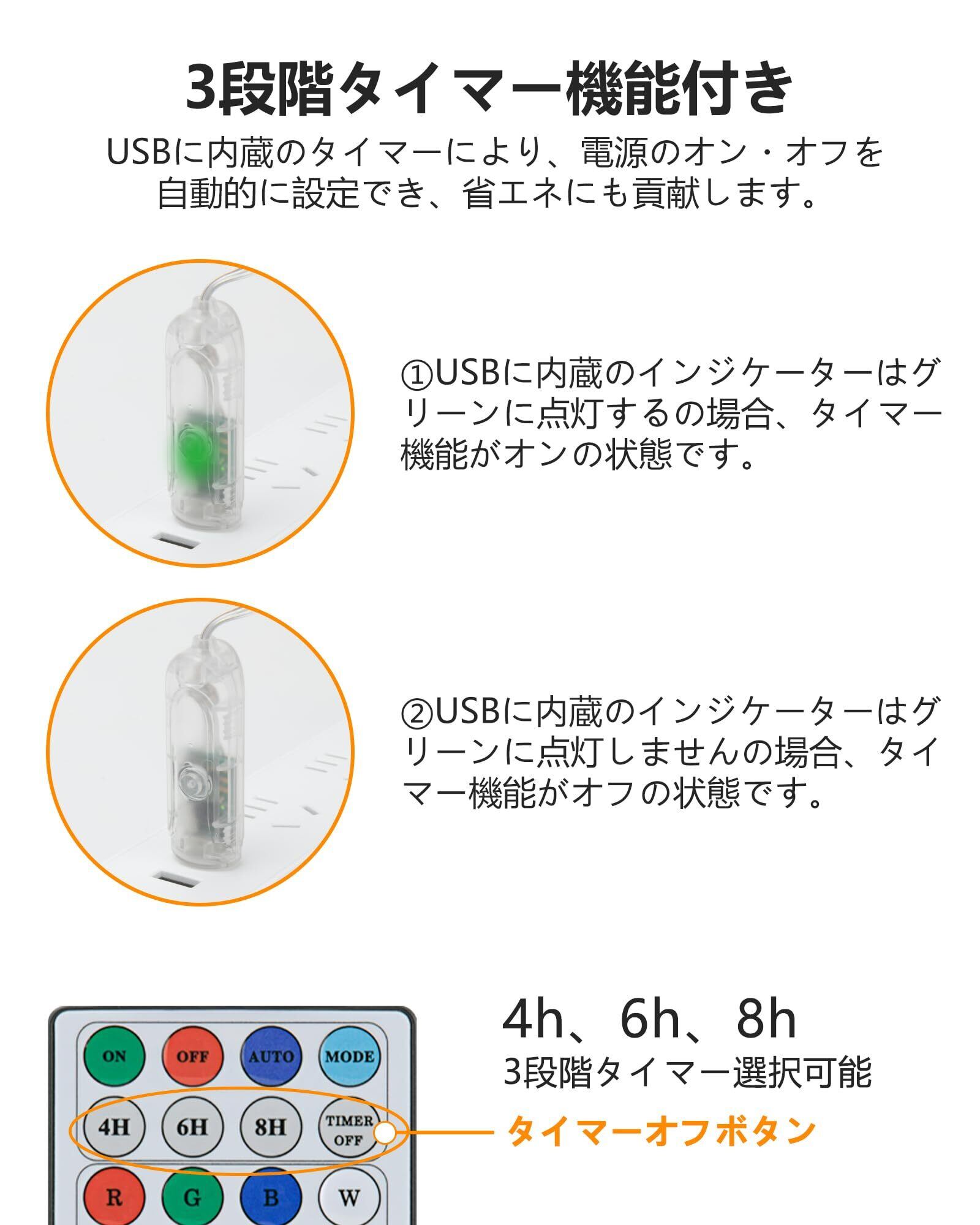✨【3段階タイマー機能・省電力】毎年のクリスマス飾りライトとして、このイルミネーションライトはタイマー機能も装備しております。リモコン操作により、4h、6h、8hの3段階タイマーが選択でき、おニーズに合わせて設定すれば、例えば4時間点灯して、その後自動消灯します。20時間後自動点灯して、4時間自動消灯します。電源をオフしなければ、その繰り替えが続いています。それで、使わない時に消灯を忘れても自動消灯でき、電気の無駄遣いを避けられ、使い勝手が非常に良いのクリスマスツリーライトです。