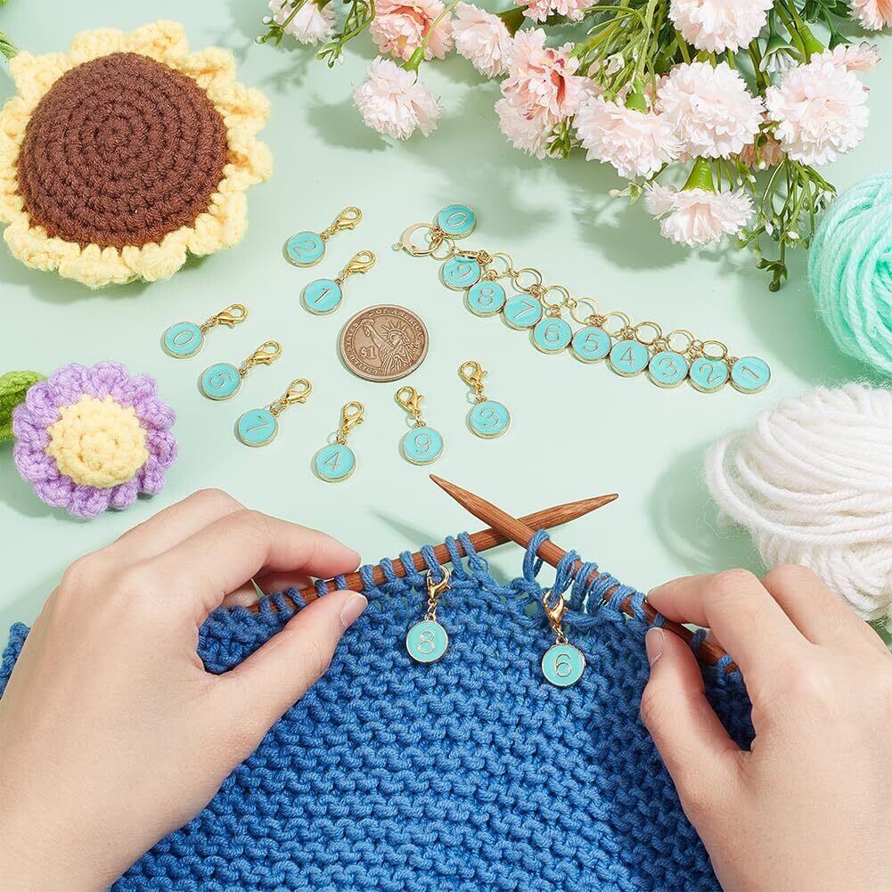 【新春セール】BENECREAT 11点 段数マーカー 数字ステッチマーカー 0~9 合金&エナメル かぎ針編み用ローカウンター 段かぞえマーカーセット 編み物マーカー 段数リング 編み物ツール 収納ケース付き ターコイズ | gsmshop