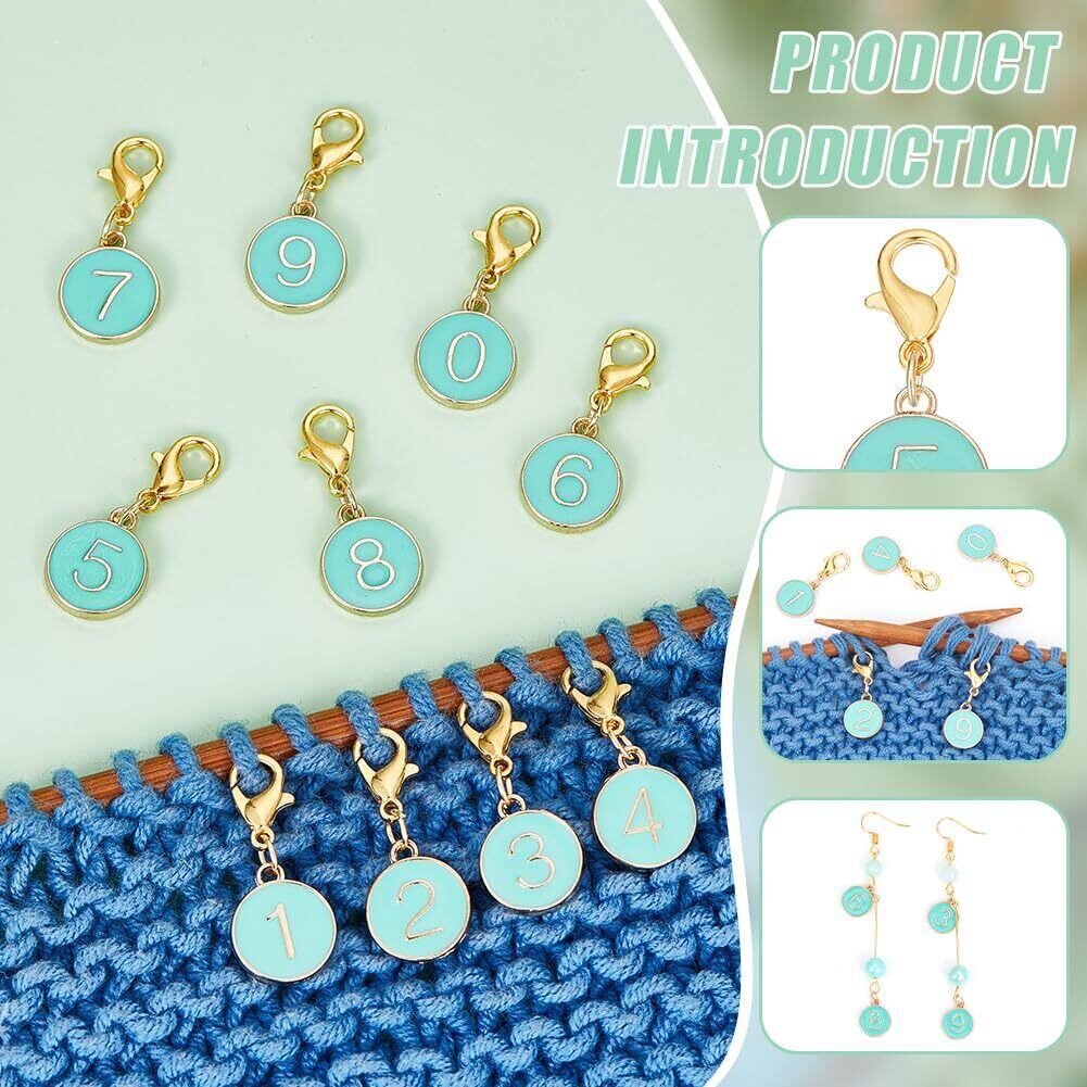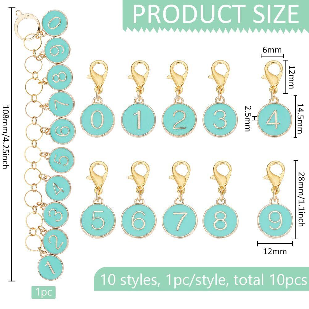 サイズ詳細:0~9ステッチマーカー:長さ約28mm、ペンダント:14mm、10個/セット;チェーン: 長さ約108mm、ペンダント: 長さ14mm、1個。