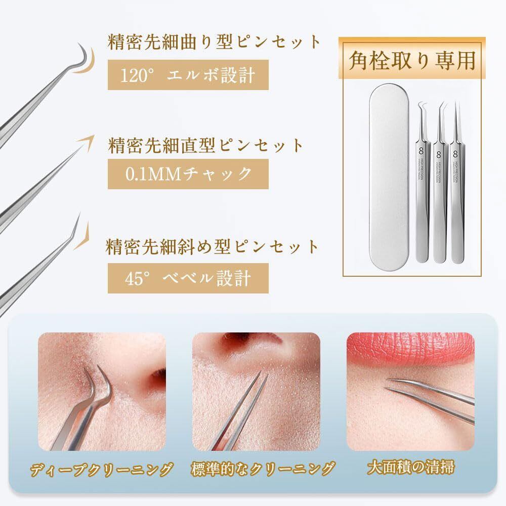 サムコス 精密ピンセット 角栓取り 先端は幅0.1mm 角栓ピンセット 毛抜き 極細ピンセット ニキビ取り 黒ずみ取り 毛穴ケア専用 精密な作業が可能 角栓取り ピンセット 収納ケース付 (No.8、3本セット)