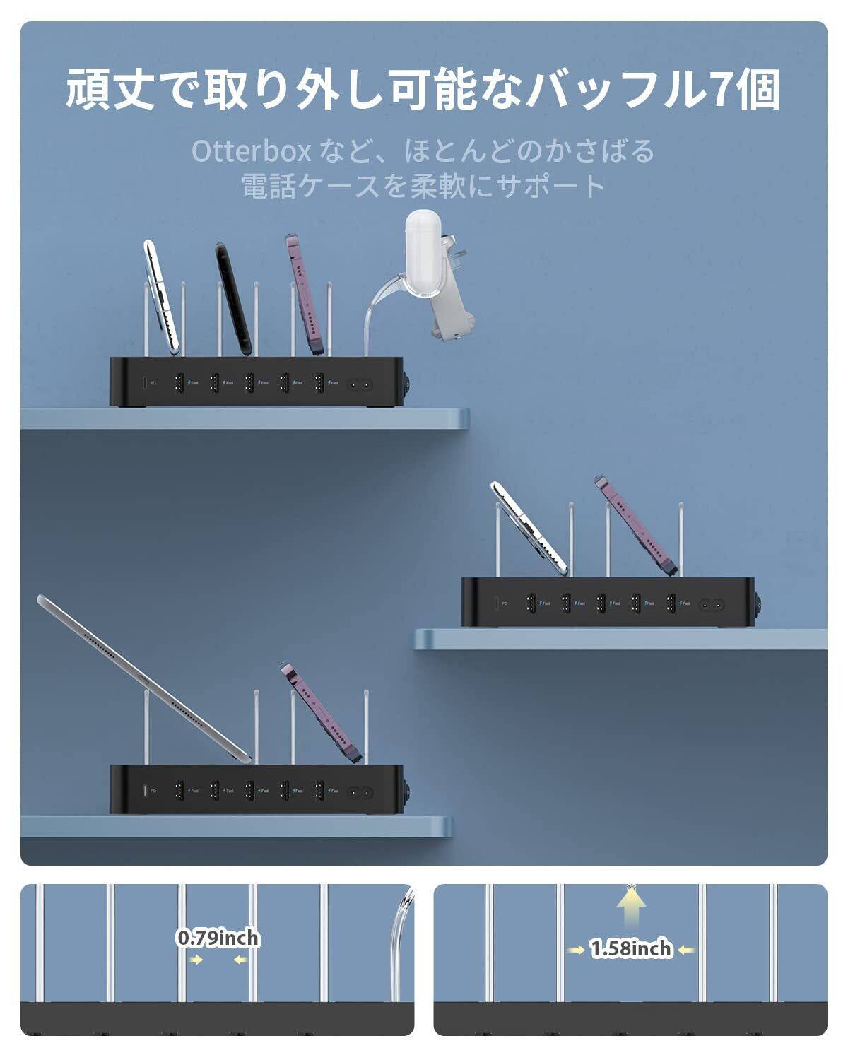 【あなたのために考えてください、箱の中身】 1- プレミアム充電ステーション、携帯電話とタブレット用の7つの強力なバッフル、i Watch Charger用の1つのバッフルホルダー(i Watch Chargerはパッケージに含まれていません)、および8パックの短い充電ケーブル(4つはiPhone iPadと互換性があり、2つはマイクロUSB 、2タイプC)毎日の使用、ユーザーマニュアル、安心の24か月、フレンドリーなカスタマーサービス。