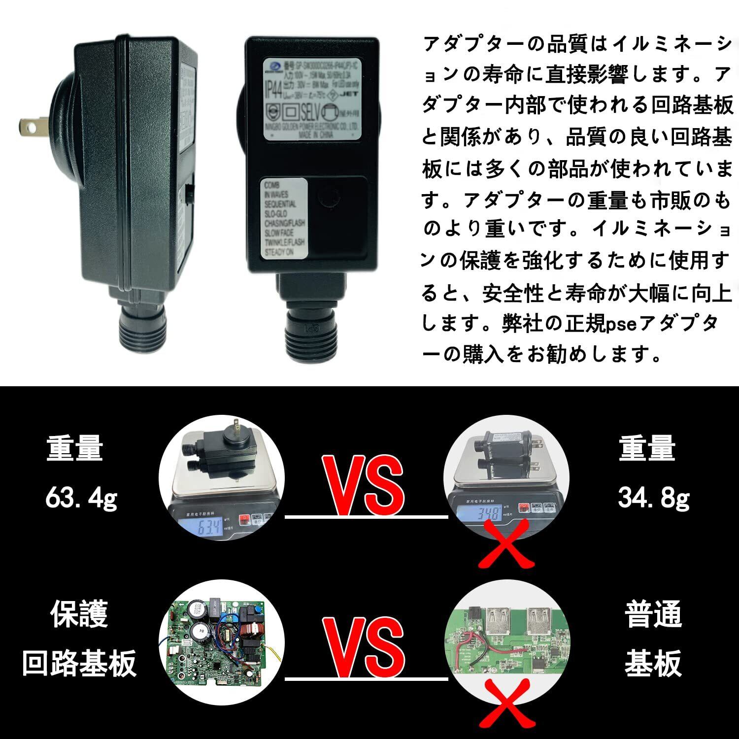 【複数連結可能】電飾の先端は接続用の防水コンセントが付いているため、防水キャップを開けてプラグと簡単に連結できます。複数個のイルミネーションを同時、同パターン点灯できます。