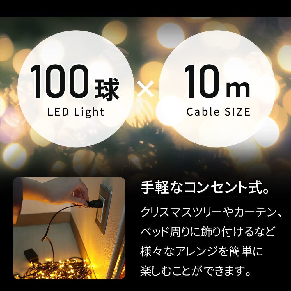 【新春セール】MITAS イルミネーション ライト LED 100球 ストレートタイプ 10mブルー 黒線 点灯 8パターン コントローラー付き コンセント LED電飾 クリスマス飾り クリスマスツリー デコレーション クリスマス電飾 連結可 ER-100LED10-BU | gsmshop