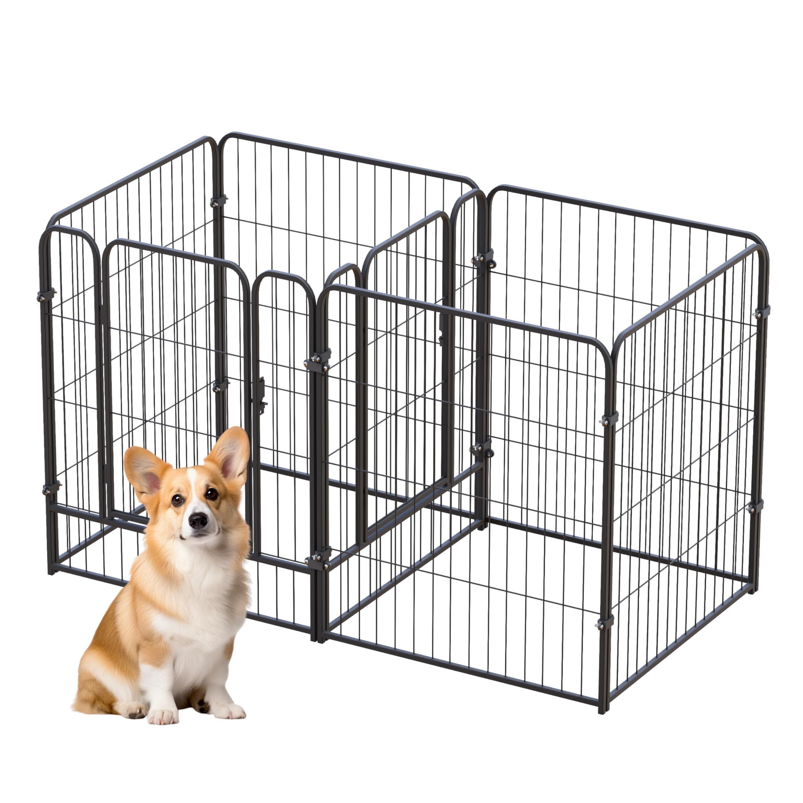 【HHOlove】ペットサークル 犬猫 小動物用 室内外兼用 扉付き 形状変更可能 犬ゲージ 小型・中型犬用 トイレのしつけが出来る トイレトレーニングセット付き ブラック (ブラック, 60*60cm, 7)