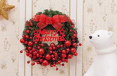 クリスマスリース 北欧風 果実物語 来年順調語り オーナメント付 玄関リース ドアチャーム 装飾 デコレーション X’mas 飾り 輪 緑 贈り物 造花 リボン付 ボール 飾り Merry Christmas文字付 メリークリスマス 店舗 撮影 道具 (ゴールド)