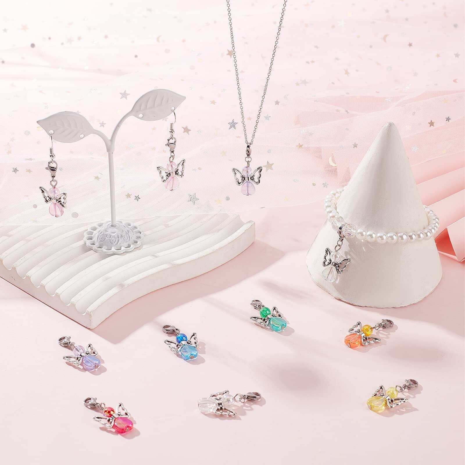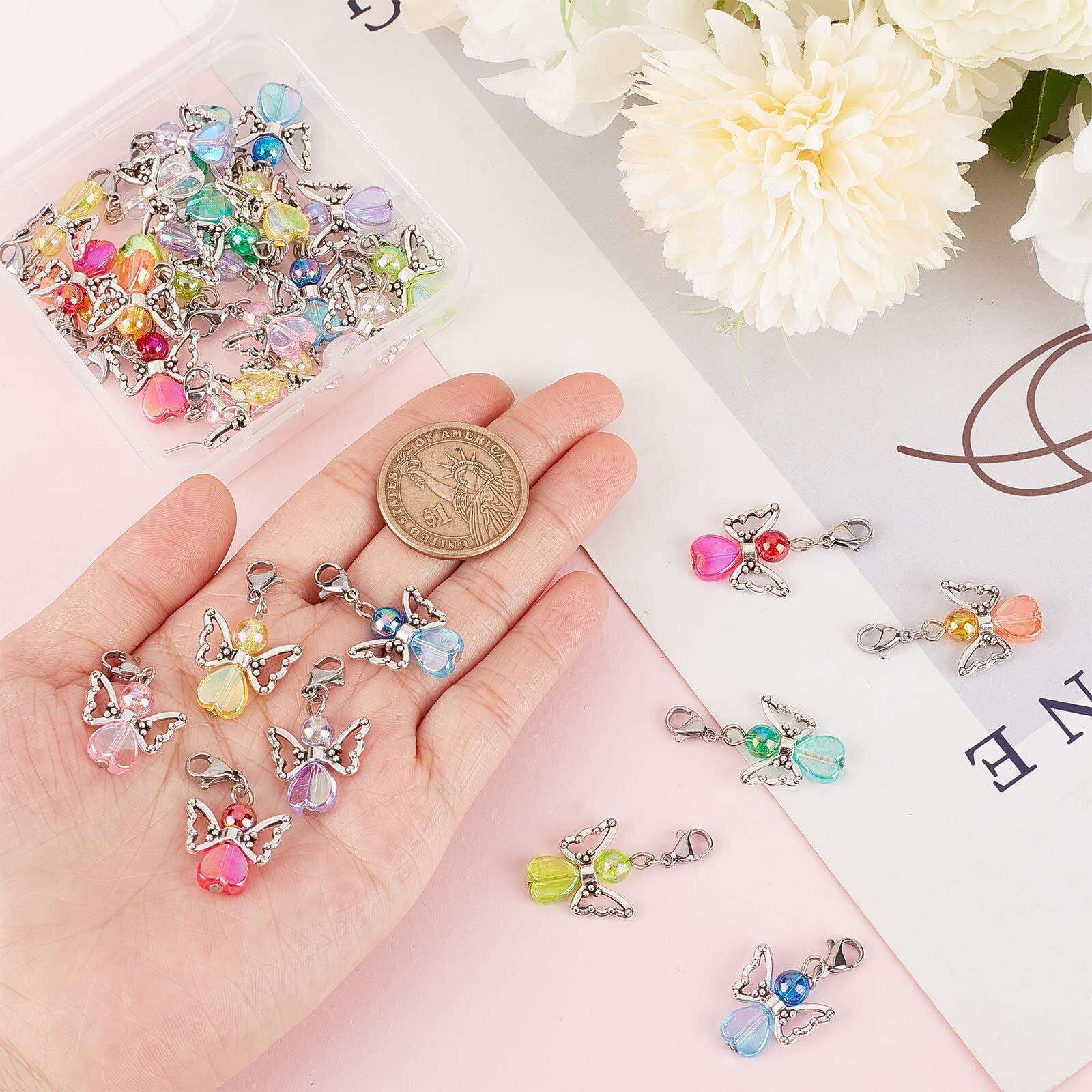 プレミアム素材: エンジェルチャームステッチマーカーはビーズで構成されています。 ヘッドピンとロブスタークラスプ. 鮮やかなカラーのラウンドビーズとハートビーズはアクリル製です, 天使の羽のビーズは合金で作られています. ロブスタークラスプはステンレススチール製です.