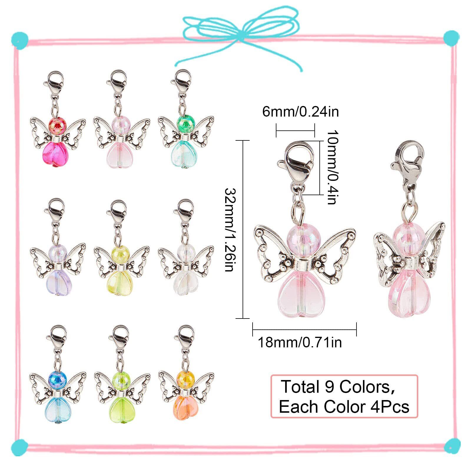 SUNNYCLUE 36個9色 32mm エンジェル ステッチ マーカー チャーム パール ウィング カニカン イヤリング ステッチ マーカー ネックレス カニカン パーツ 大きめ 羽 ピアス 翼 合金チャーム 人工真珠 ロブスター 花びら キーホルダー クラスプ 金具 留め具 花 キーホルダー ジャンプリング チョーカー ブレスレット チャーム マカロン チャーム カラフル アクセサリーパーツ 基礎パーツ 留め金具 飾り物 ジュエリー作り レディース デコキット ハンドメイドパーツ クラフト手芸 手作り 金具セット