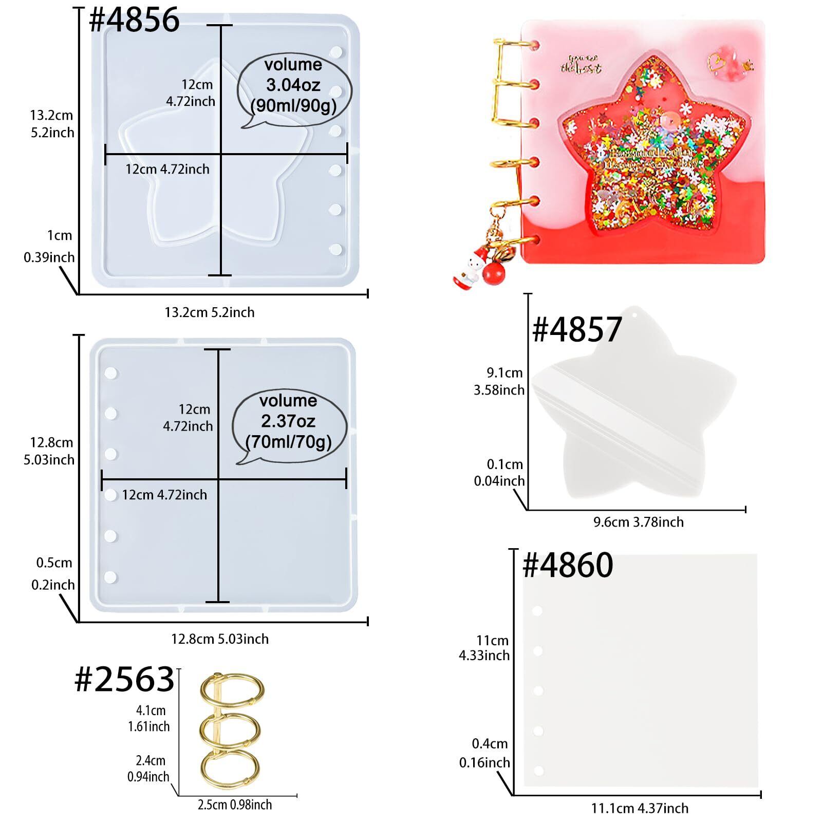 FUNSHOWCASE シェイカーモールド シリコンモールド ノートブック 星 手帳 PPシート2枚+表紙45枚+バインダー金具2個付き 流砂型 中身がシャカシャカ動く レジン型 再利用可能