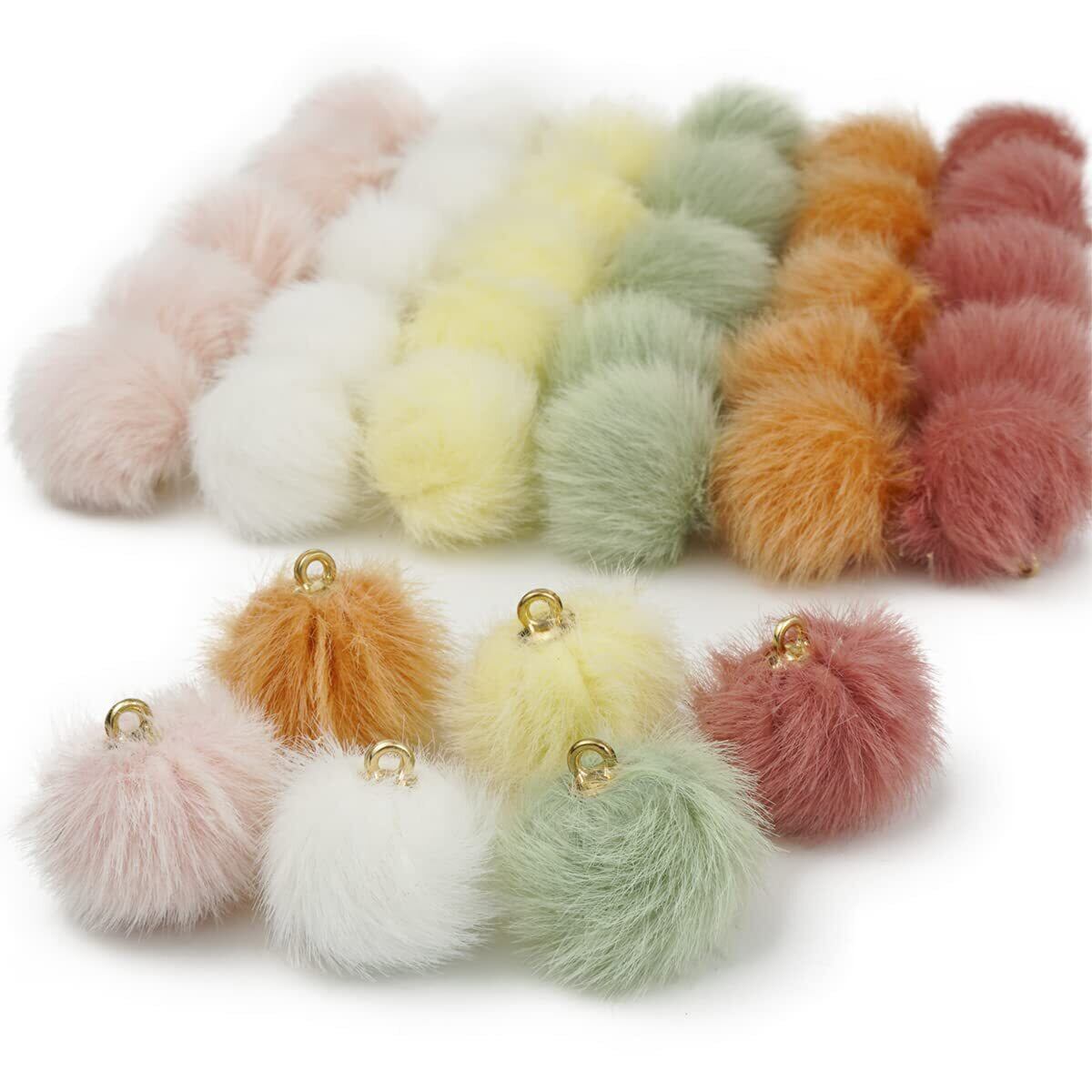 ファーボール カン付き 16mm 6色36個セット アイボリー アクセサリーパーツ (ピンク・イエロー・オレンジ・イチゴ色・グリーン)