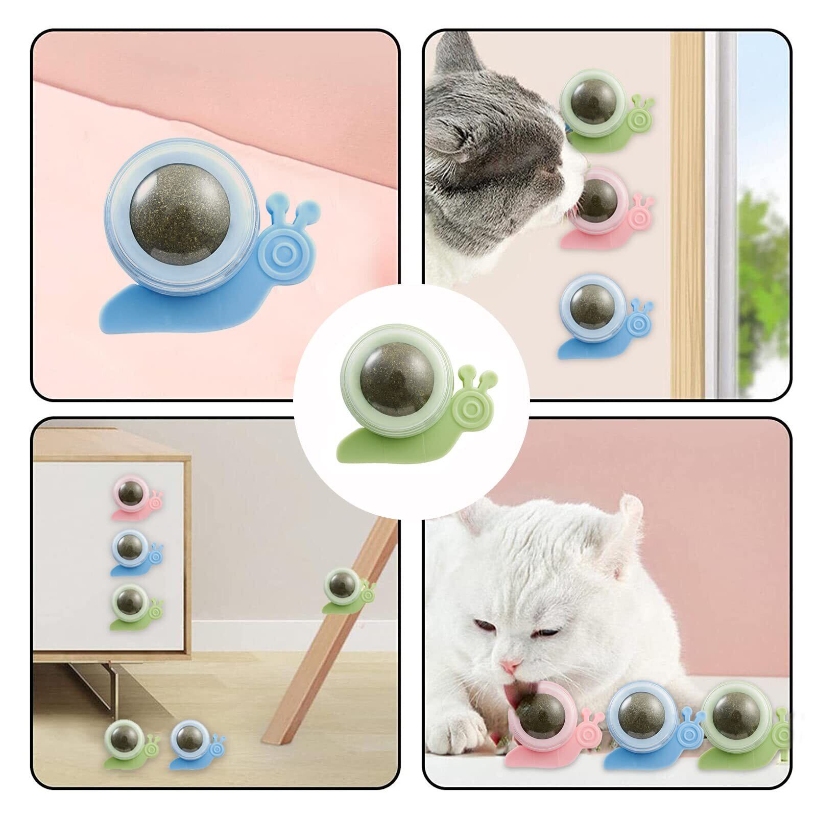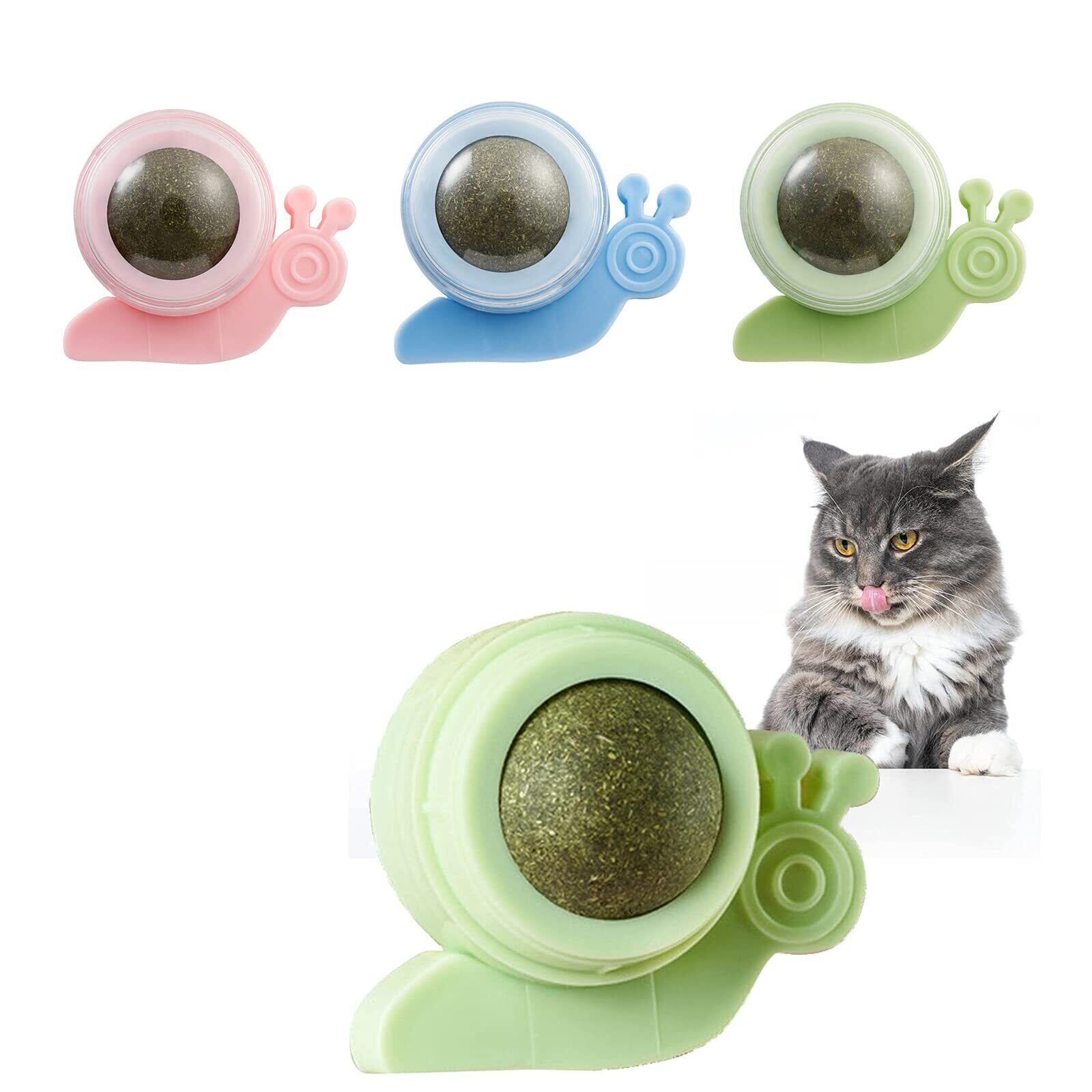 ALLMIRA 猫のおもちゃ3個セット 猫 またたびボール 回転 薄荷ボール またたびトイ 壁 猫舐めおもちゃ 猫咀嚼おもちゃ 消化を助け 食用 猫用品 猫のおやつ 猫キャットニップ マタタビボール玩具 ハッカボール 歯のクリーニング (カタツムリ 3個入)