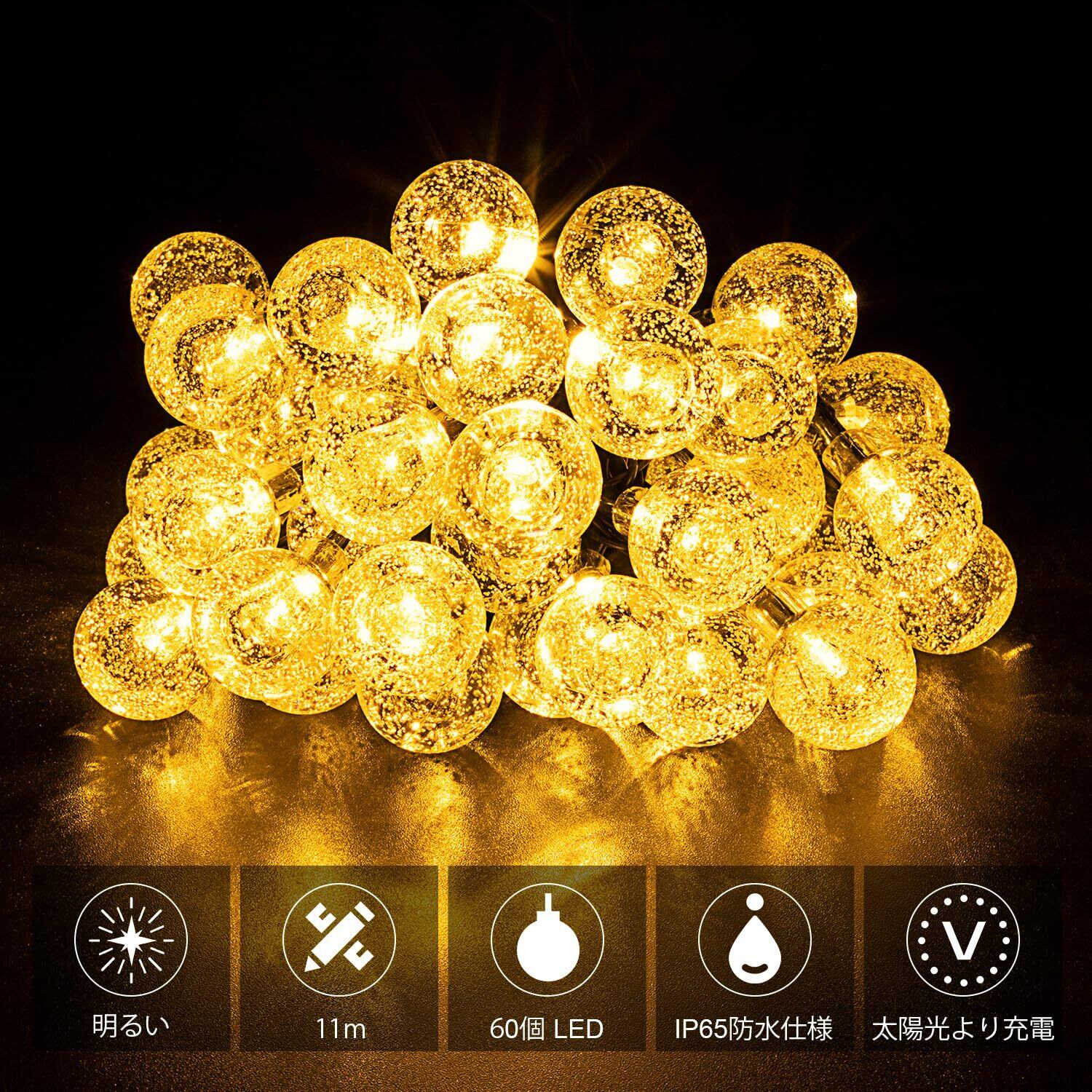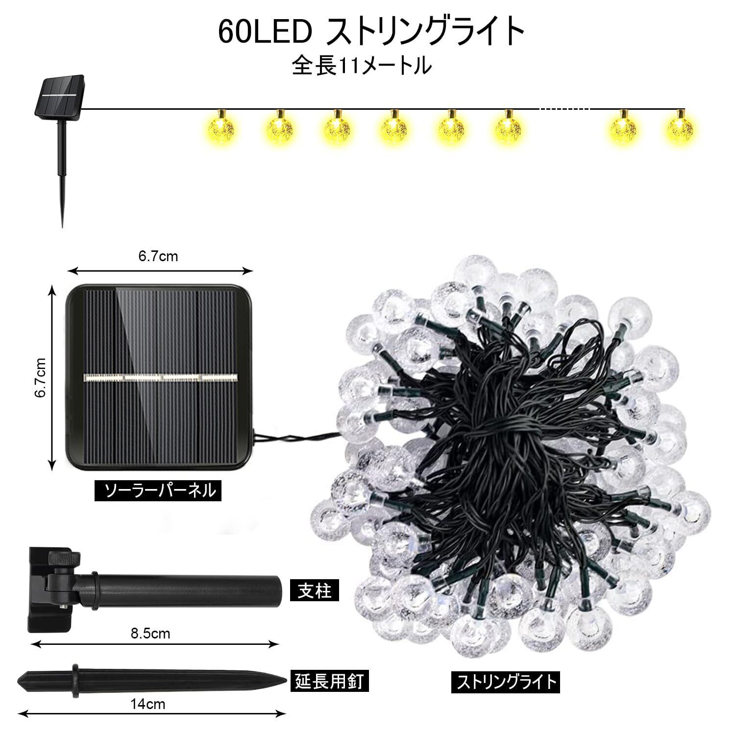 Auting LEDイルミネーションライト ソーラー 屋外 防水 おしゃれ 60電球11M ストリング 8種点灯モード IP65防水 フェアリー キャンプ 飾り 屋外/室内/ガーラン/アウトドア/テント/結婚式/庭/パーティー/新年/ハロウィン 飾り 暖色