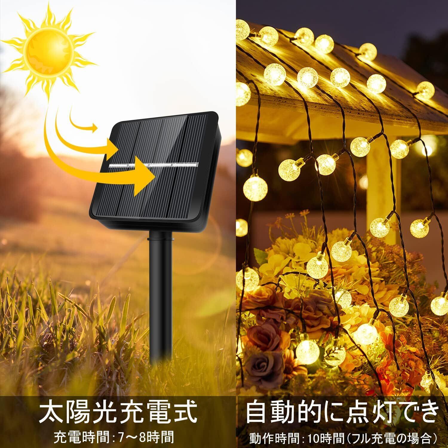 【電気代0円・省エネ】太陽光発電、ソーラーパネルに1200mAhのバッテリーが内蔵されて、追加の電力コストは不要、フル充電の場合は、ストリングライトは夜間に自動的に10時間点灯します。LEDなので熱を持たないため熱くなりません。省エネの上に環境に優しい!