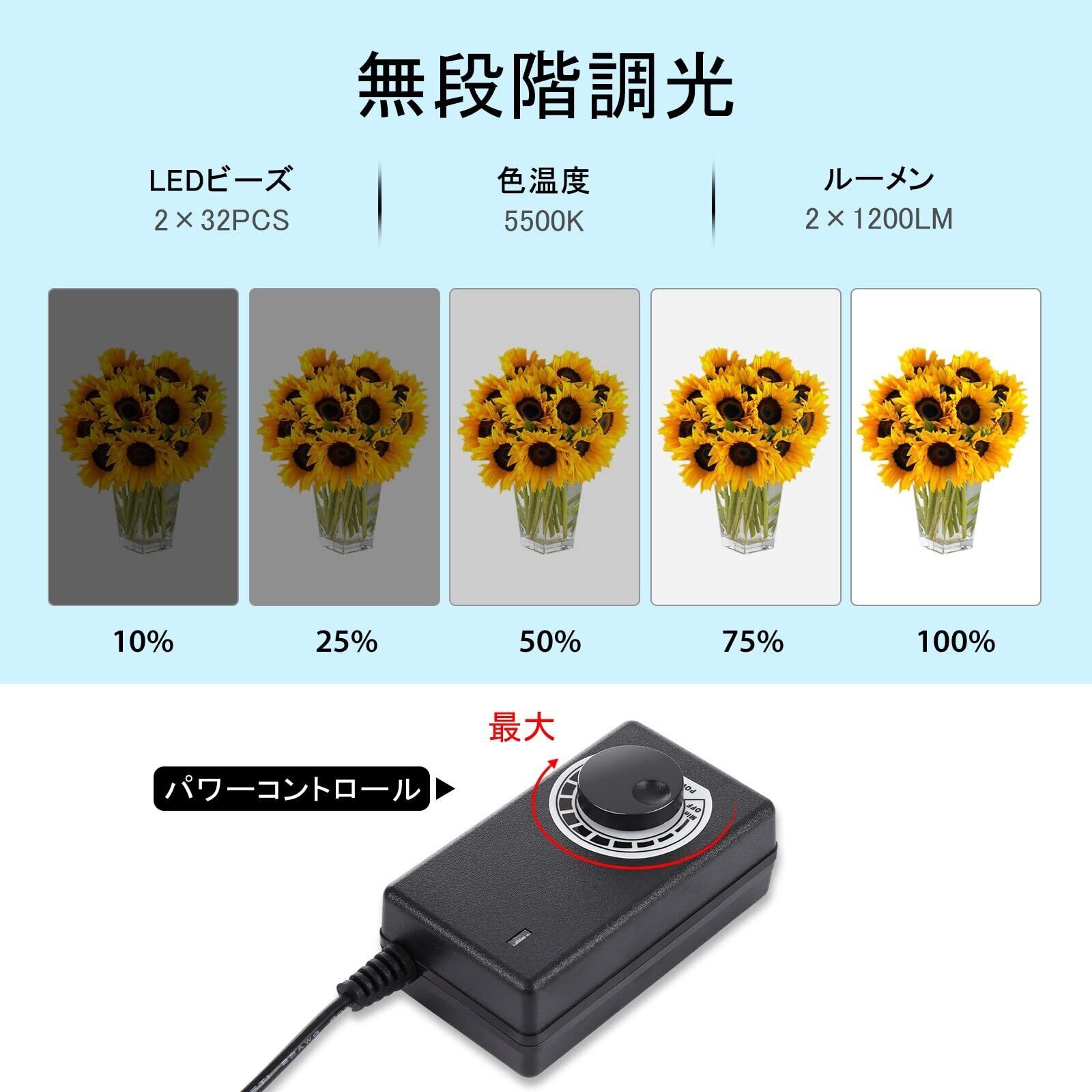 【無段階調光】このシンプルな撮影ボックスには2×32 LEDランプビーズが装備されており、優れた照明効果を提供します。撮影ニーズに合わせて光源の明るさを簡単に調整でき、明るく鮮やかな雰囲気を演出したり、柔らかく温かみのある雰囲気を演出したりすることが簡単に実現できます。各LEDランプビーズのルーメンは2×1200LMに達し、色温度は5500Kで、リアルで鮮明な写真効果をもたらします。