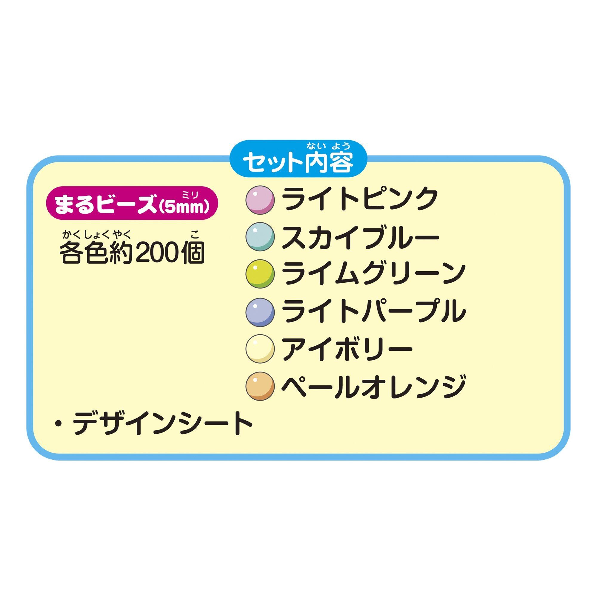 セット内容:まるビーズ(6色・約1200個)、デザインシート