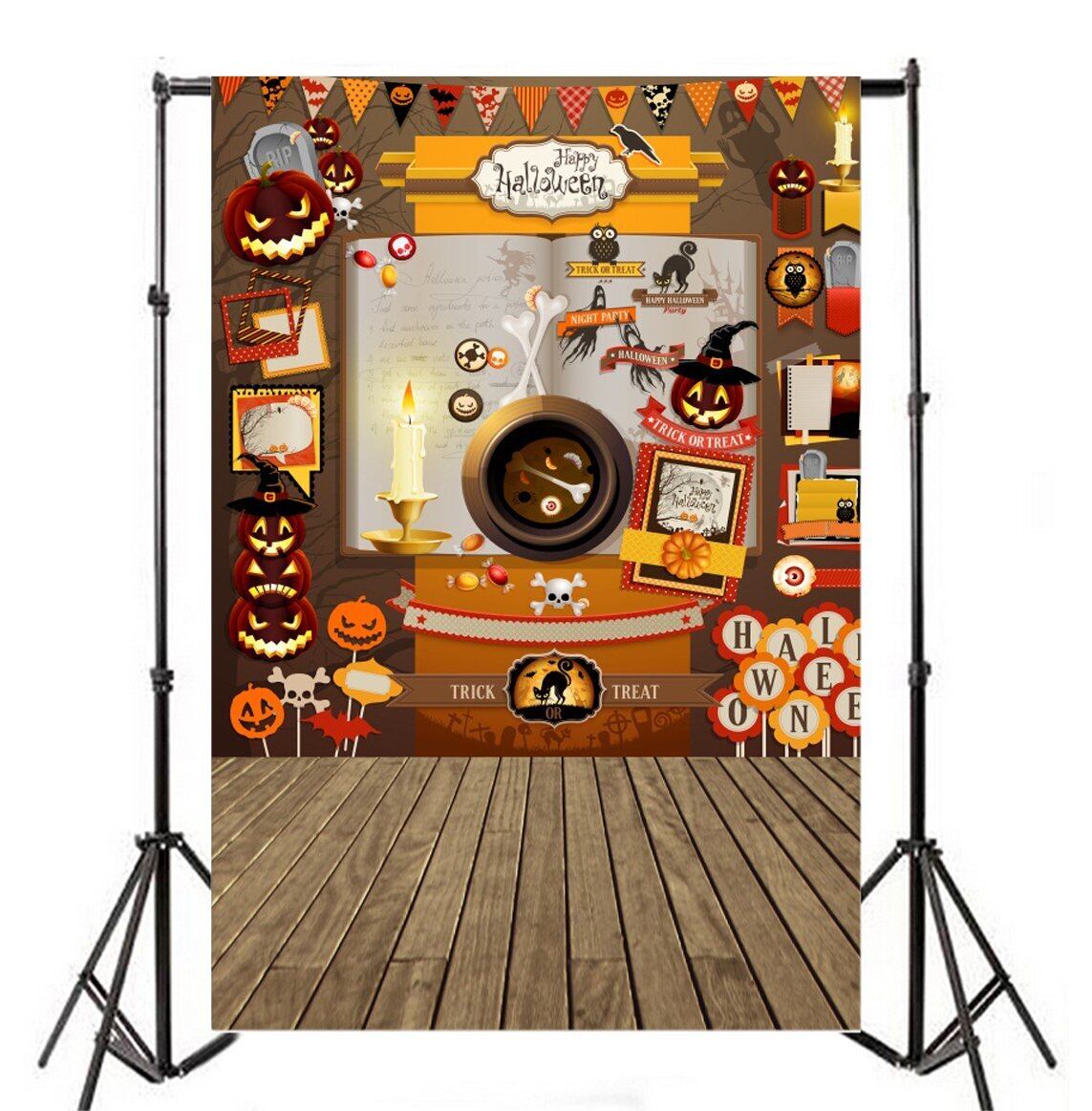 Qinunipoto 背景布 ハロウィン happy halloween カボチャ 写真撮影用 写真の背景 背景幕 撮影用 写真館 自宅用 商業用 写真背景 無反射布 写真スタジオ 写真 カスタマイズ可能な背景 子供用 ビニール 1.5x2.1m