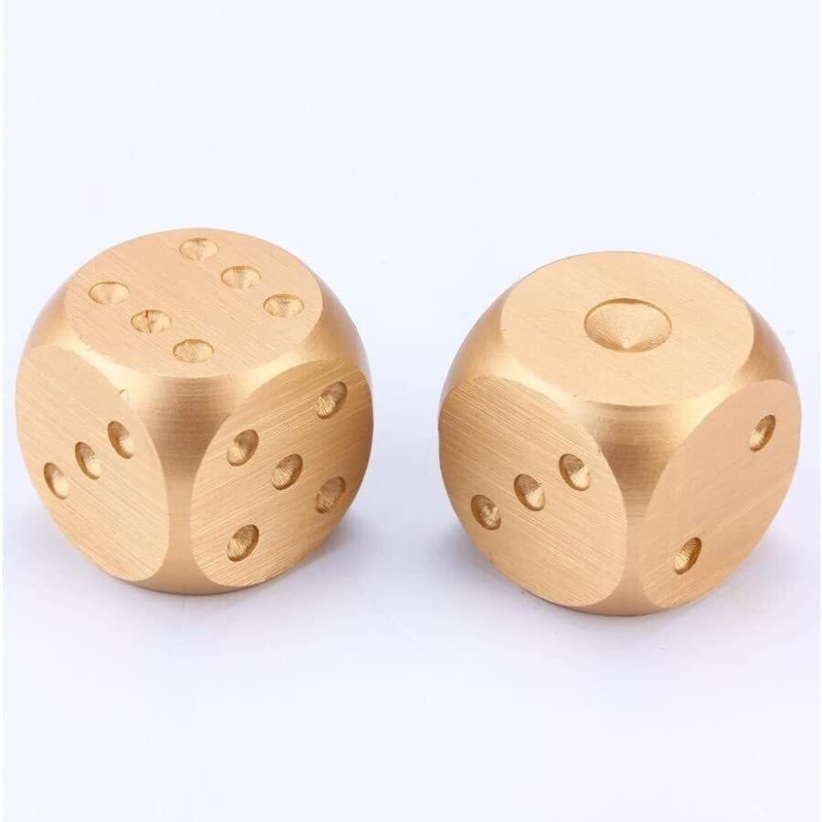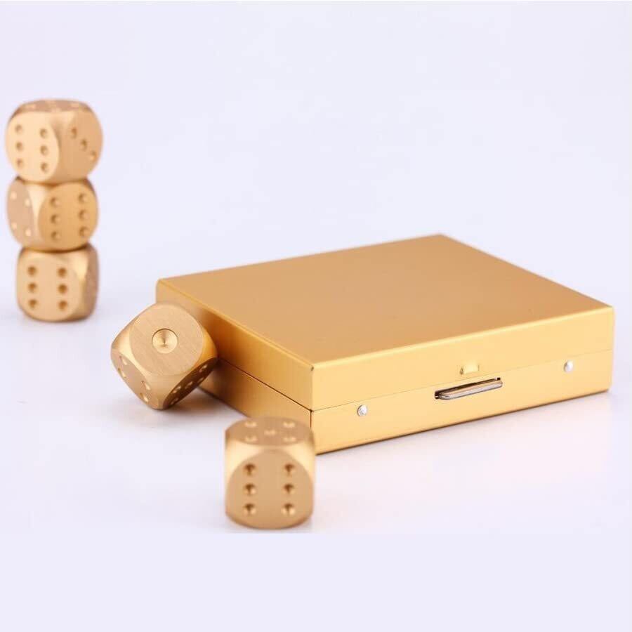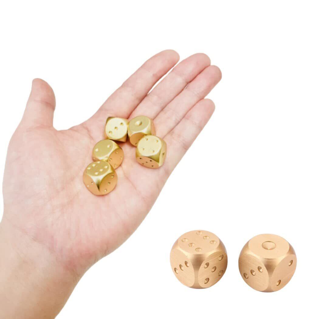 XSAJU サイコロ 金属製 メタルダイス ゴールド アルミ合金 6面 賽子 5個入り 専用ケース付き