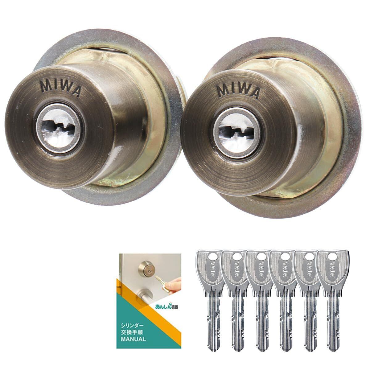 MIWA(美和ロック) LIX+LIX シリンダー錠 PR 玄関ドア 鍵 交換 ディンプルキー ブロンズ系(SA色) MCY-497 ダブルロック 2個同一 キー6本付属 交換手順書付 TE LE PESP GAS