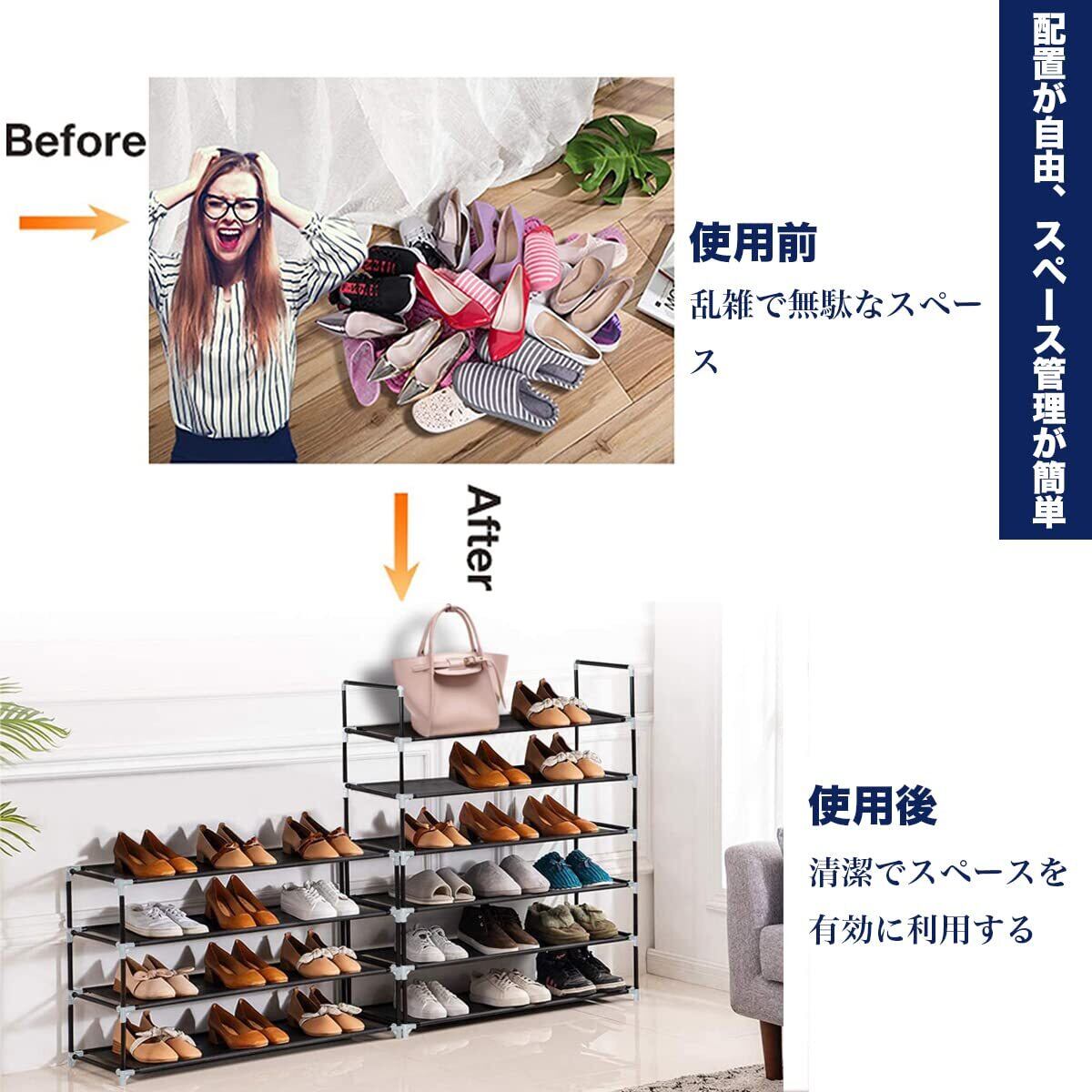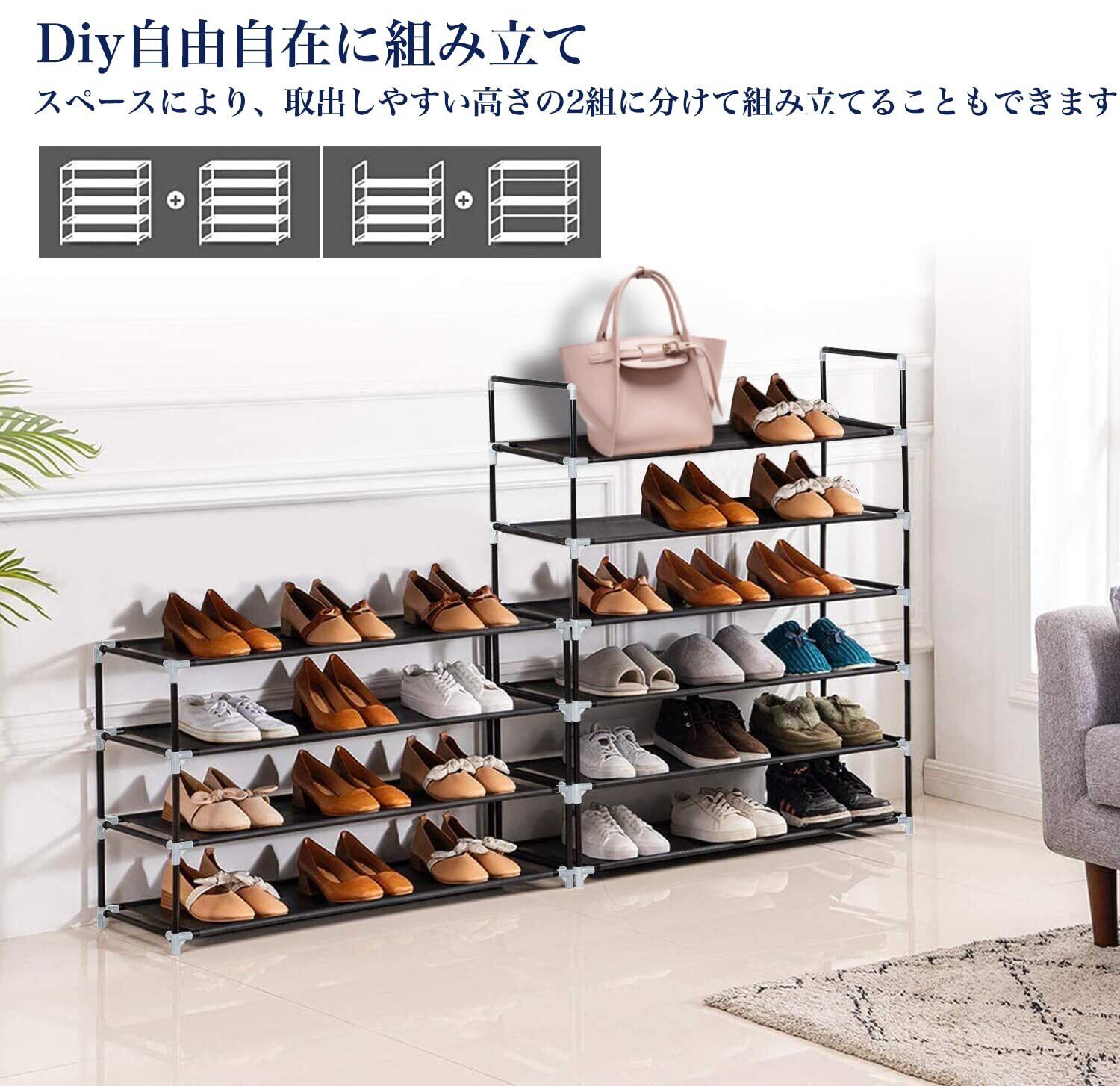 【シューズラック 組み立て簡単、分解容易】軽量且つ取り外すも可能で、引っ越しする時はすごく便利です。組立はあまり力を要らず、工具も不要な,女性の方でも手軽に組み立てることができます!日本語説明書付き