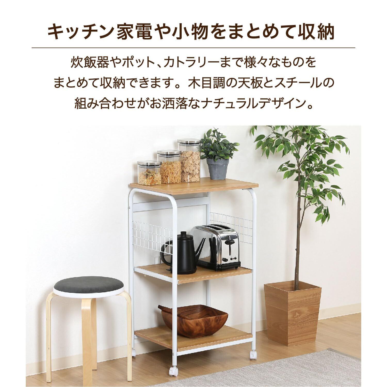 不二貿易 レンジ台 キッチンラック 幅51.5×41×高さ89.5cm ホワイト ナチュラル スライド棚 収納 レンジワゴン キャスター付き 14640