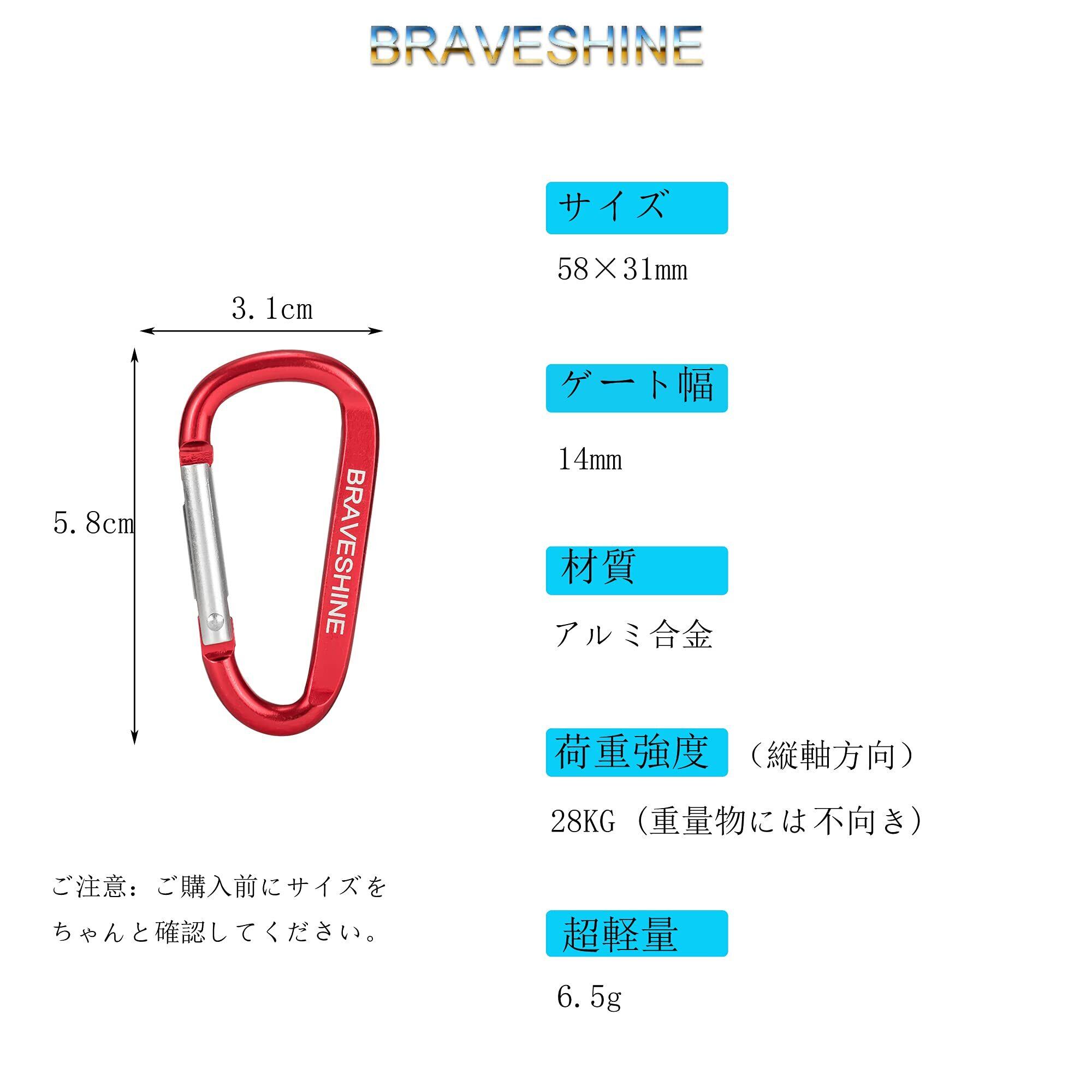 カラビナ dリング BRAVESHINE アルミ合金 軽量 キーホルダー アウトドア活動 ハイキング キャンプ 小物用 多機能カラビナ 58×31mm 10個セット