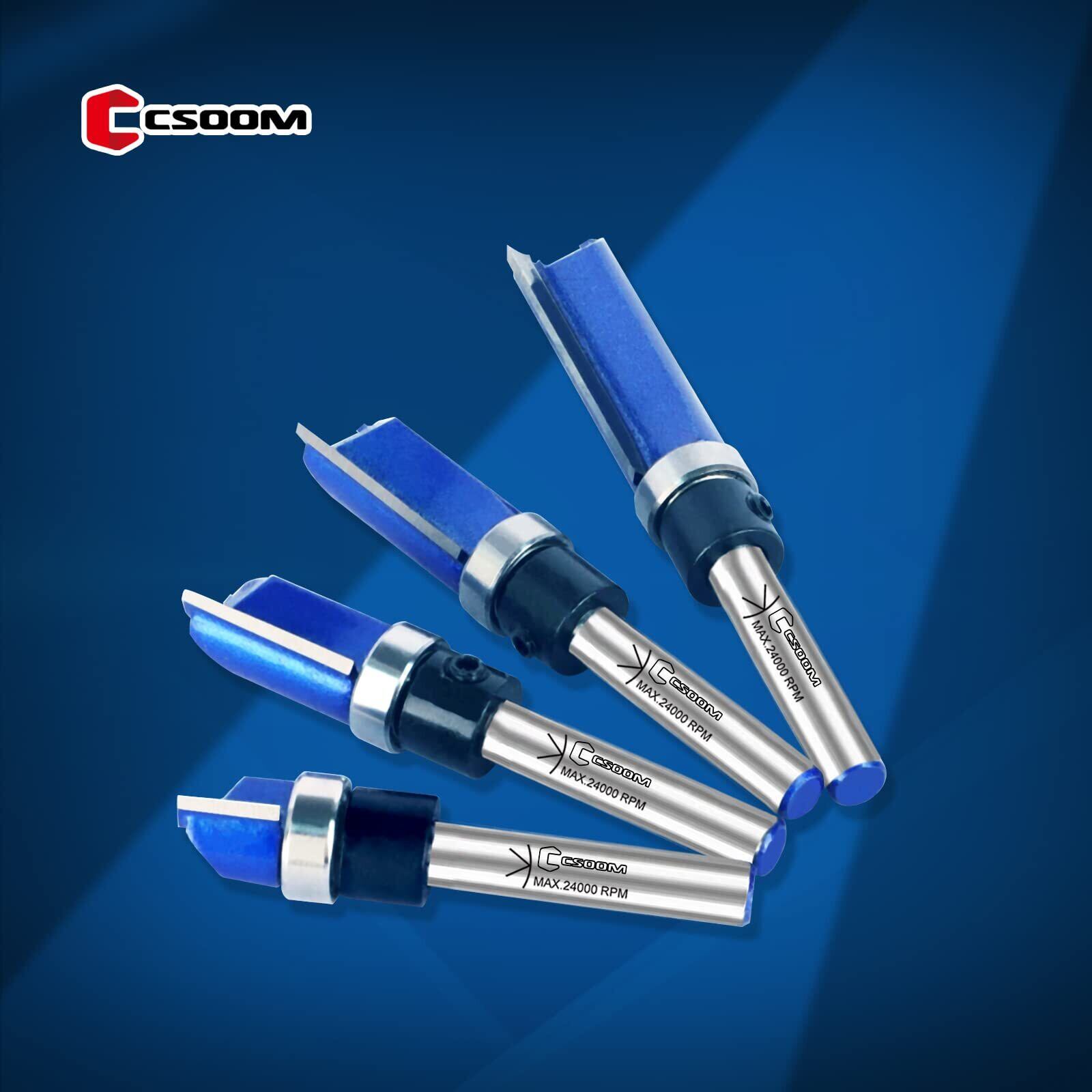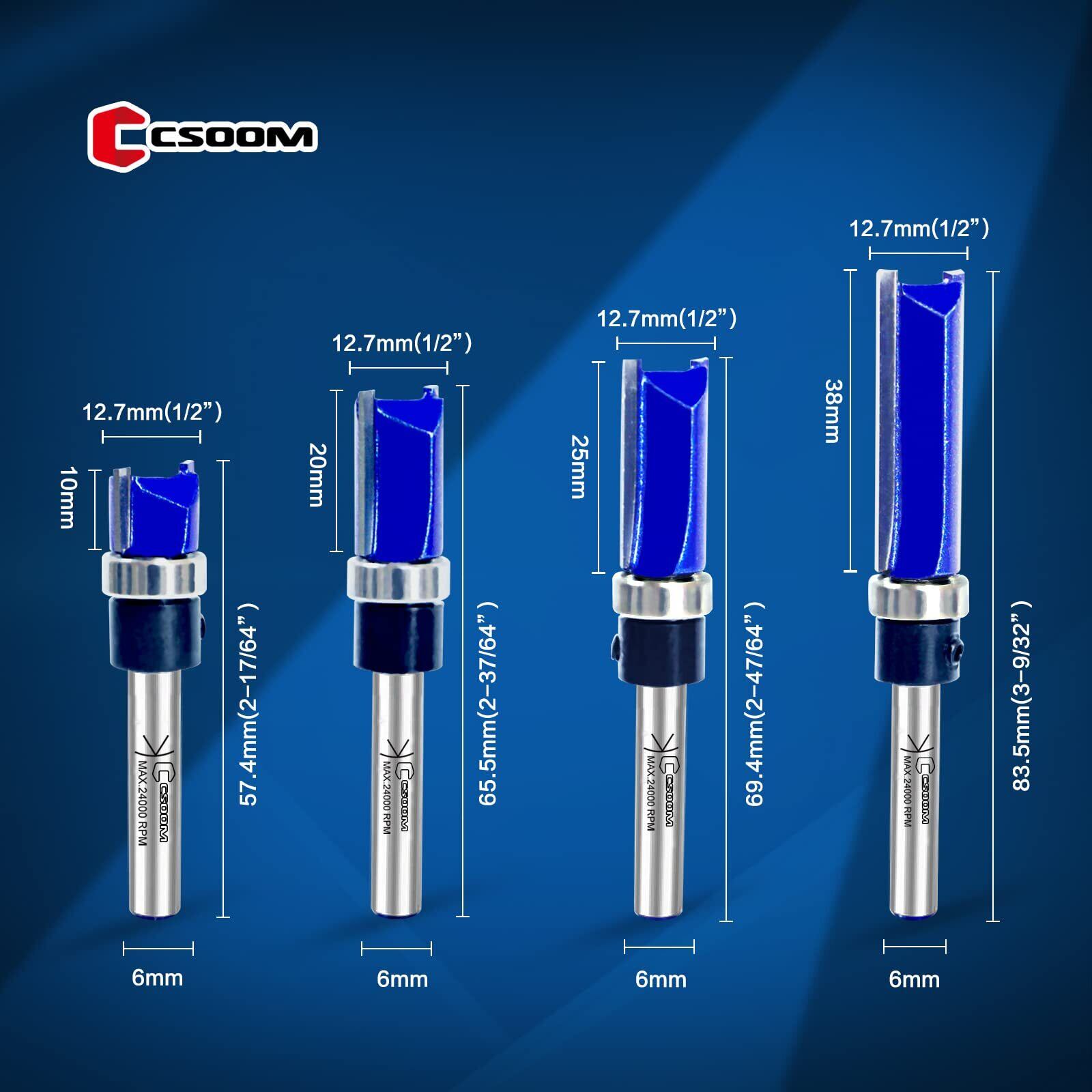 CSOOM Pro 4本入 轴径6mmルータービット 面取りビットほぞカッターガイドべアリング付ストレートビット 電動ルーターフライスカッター工具トリマー DIY 木工用
