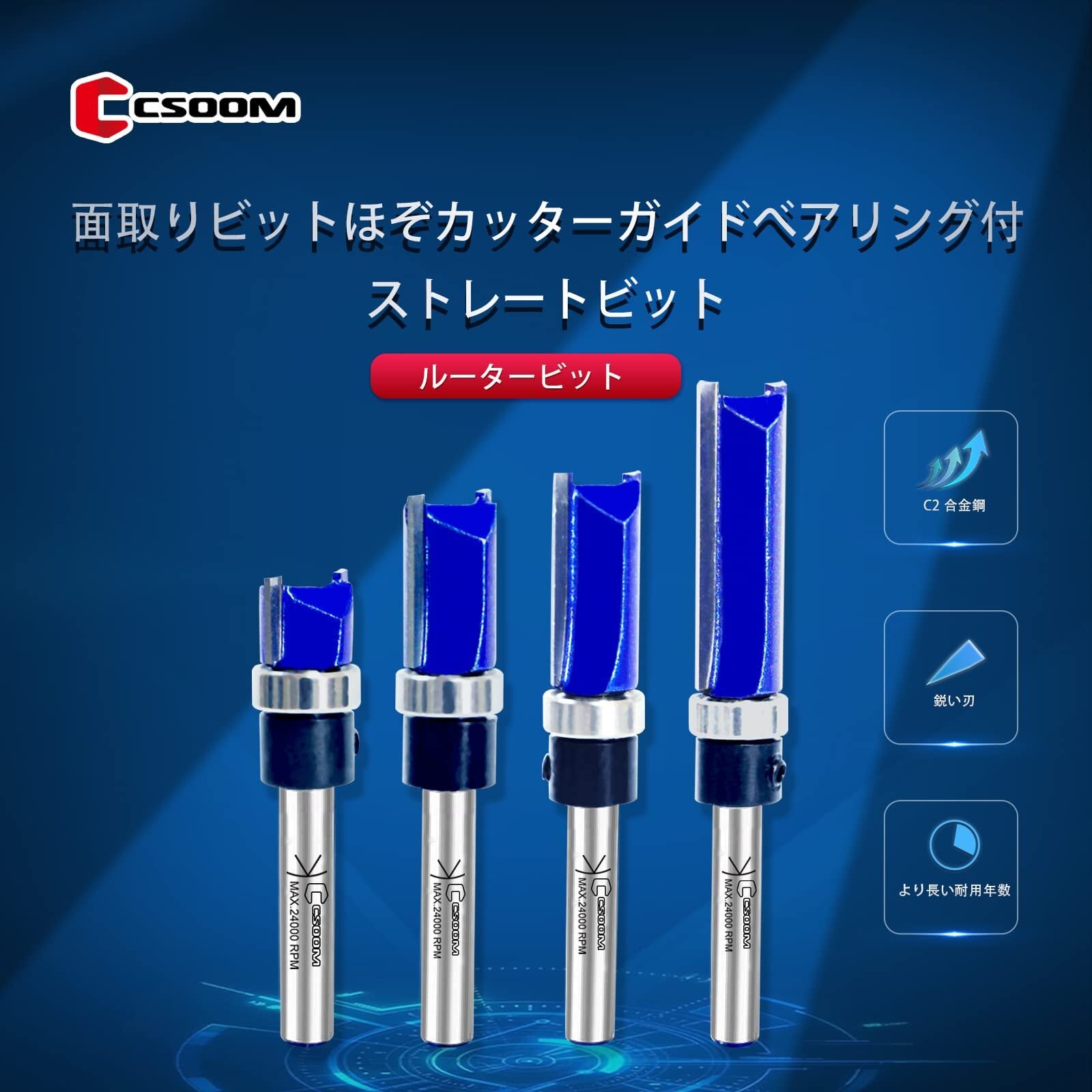 【在庫処分】CSOOM Pro 4本入 轴径6mmルータービット 面取りビットほぞカッターガイドべアリング付ストレートビット 電動ルーターフライスカッター工具トリマー DIY 木工用 | gsmshop