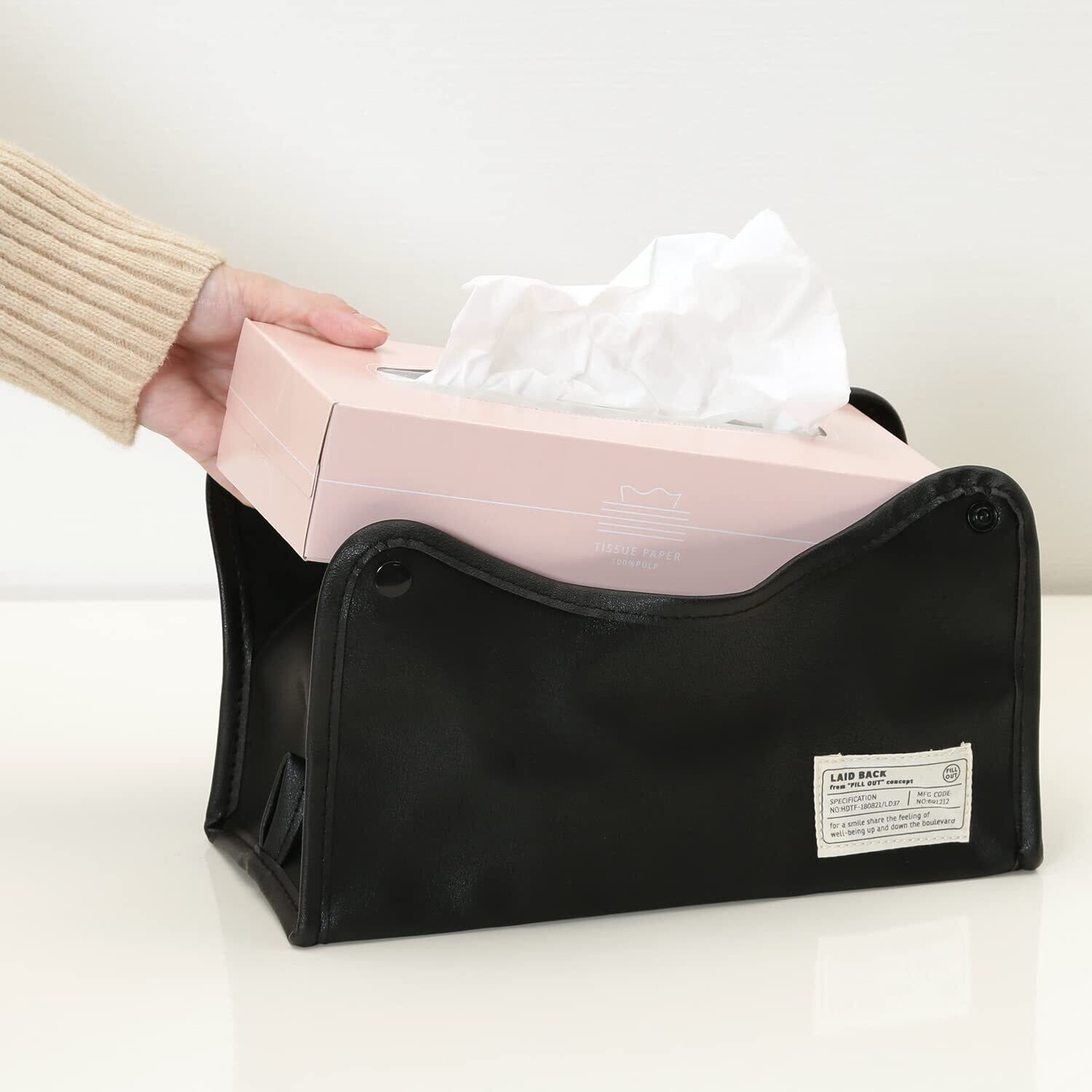不二貿易(Fujiboeki) ティッシュケース カバー 幅27.5×奥行11×高さ6.5cm ブラック レギュラーサイズ対応 吊り下げ可能 LAID BACK 27647
