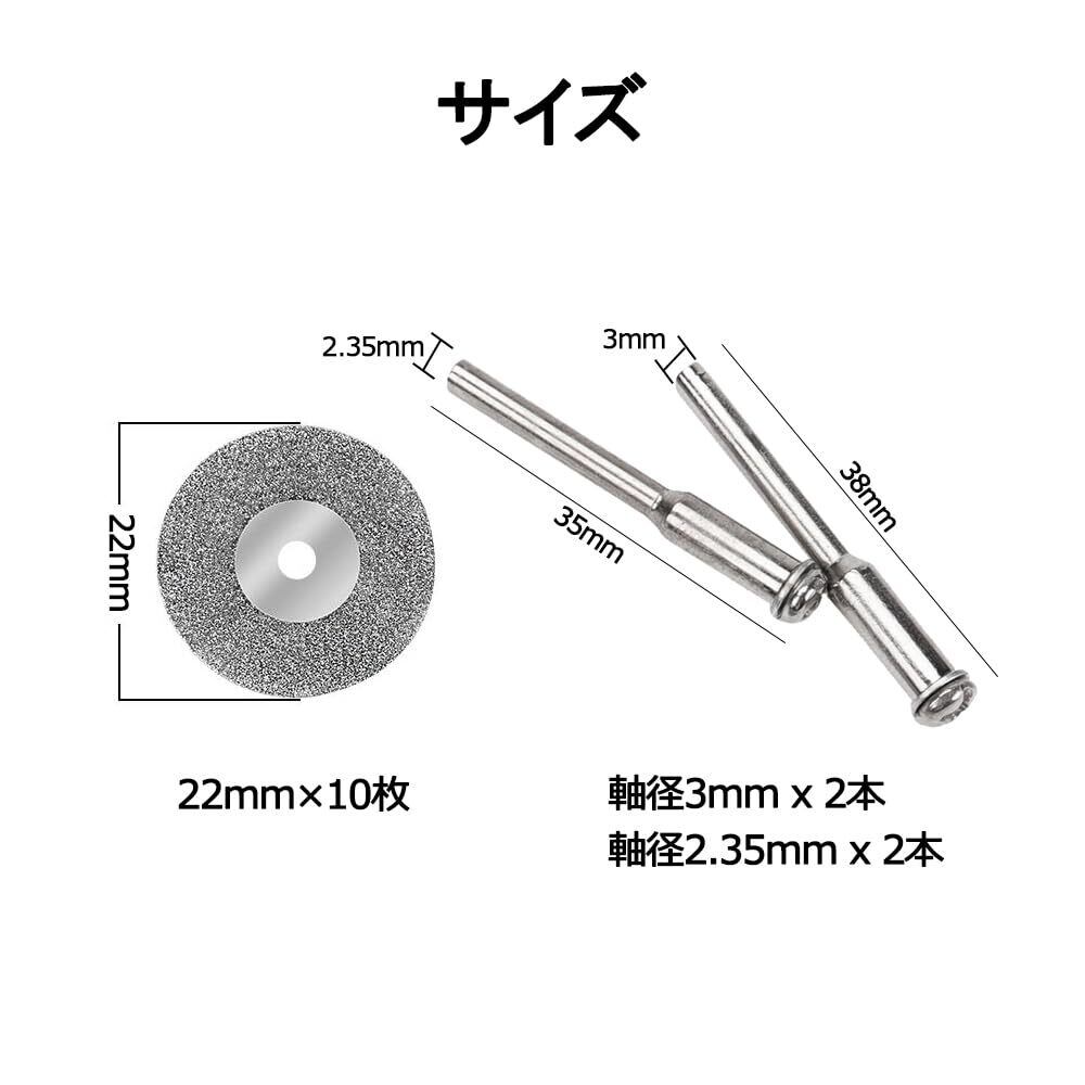 【セット内容】ダイヤモンドカッター10枚、軸4本(軸径2.35mm*2、軸径3.00mm*2)